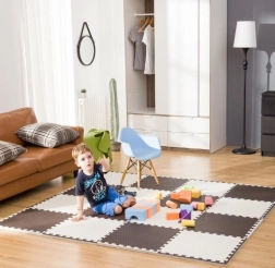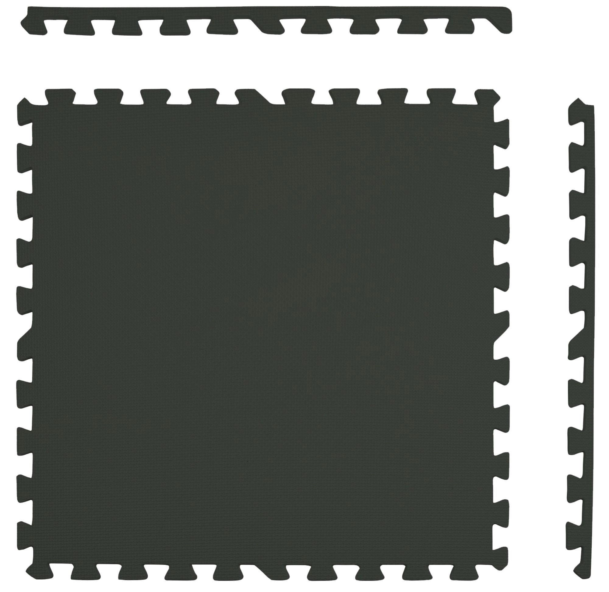 Penasta podloga HUMBI v elegantni črni barvi je idealna izbira za otroško sobo, dnevni prostor ali igralnico. Trije veliki kosi z robnimi letvami se sestavljajo kot sestavljanka, zato hitro ustvarite površino 180 × 60 cm – z dodajanjem dodatnih setov jo lahko enostavno povečate. Material EVA je brez ftalatov, formamida, BPA in PVC, izpolnjuje EN 71 in ima oznako CE.