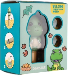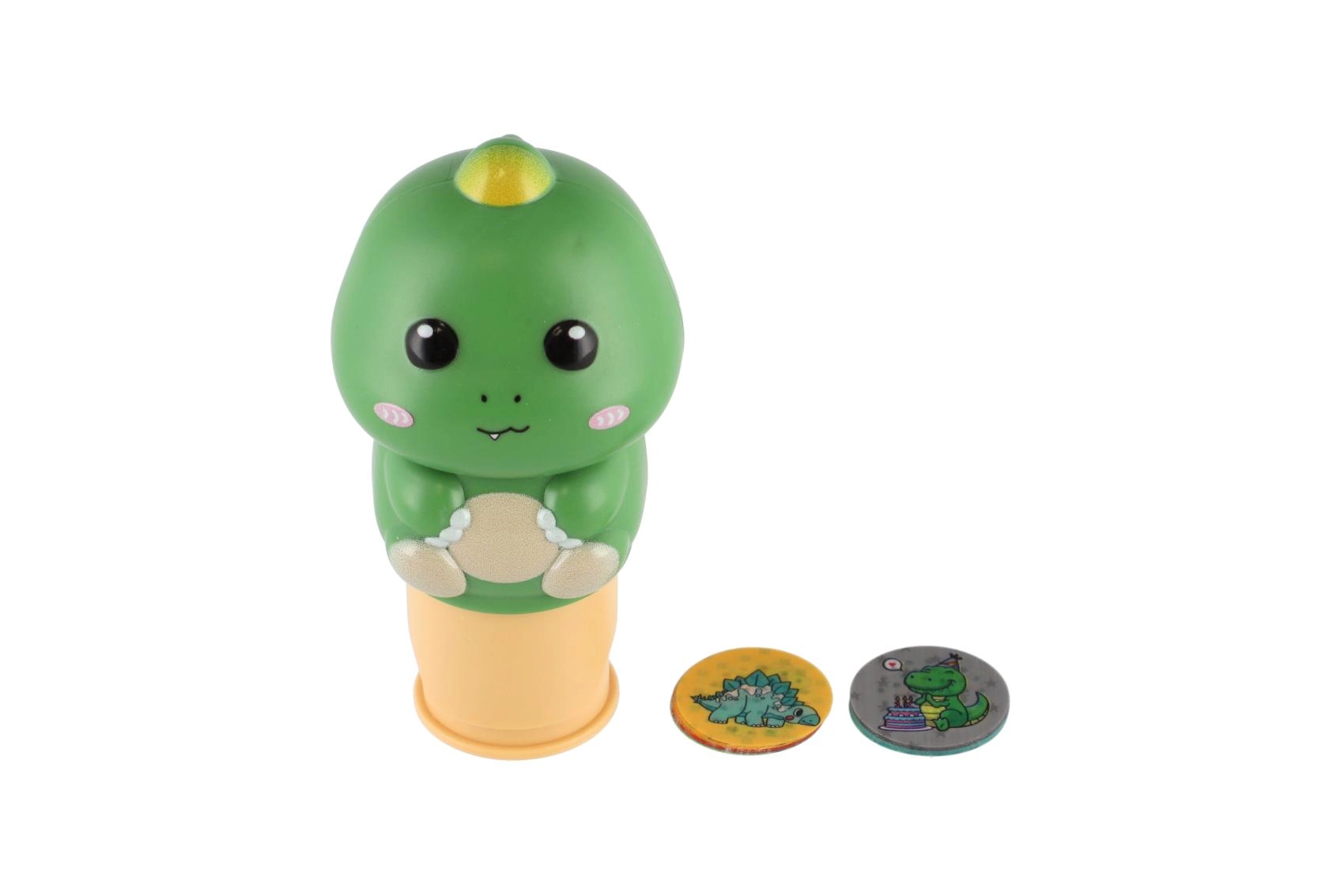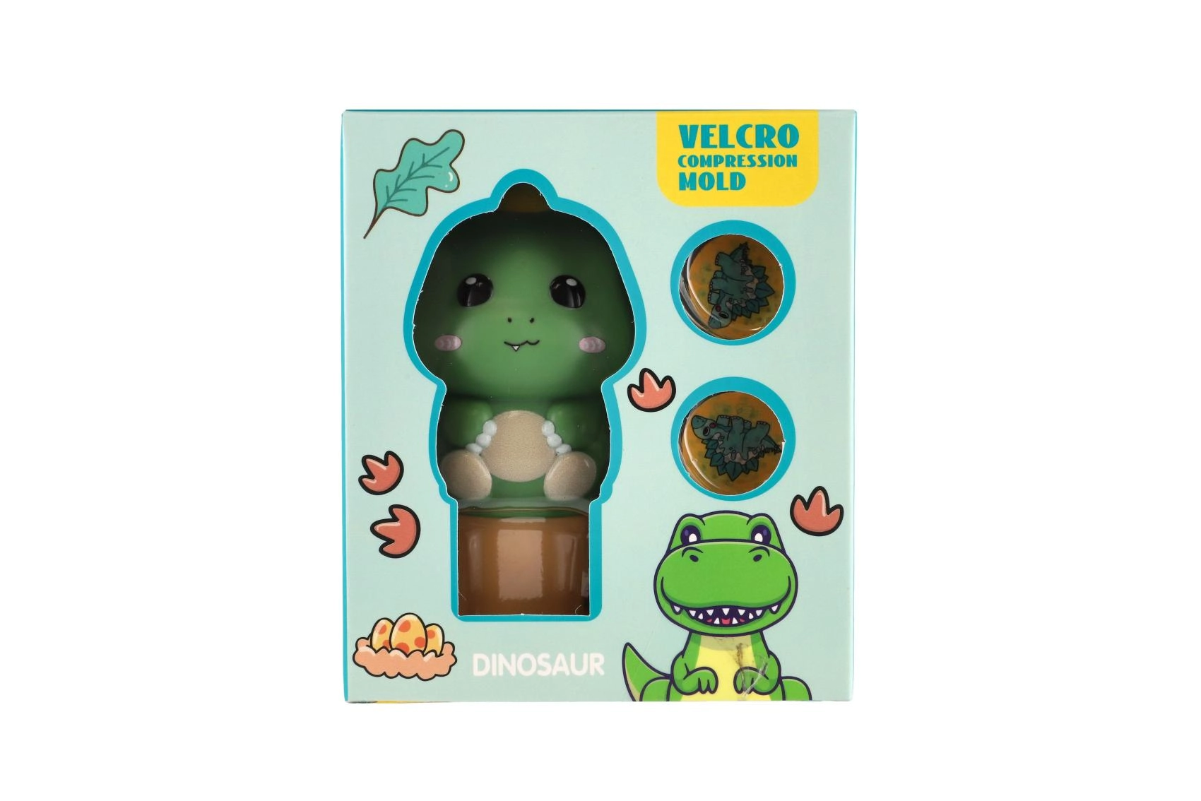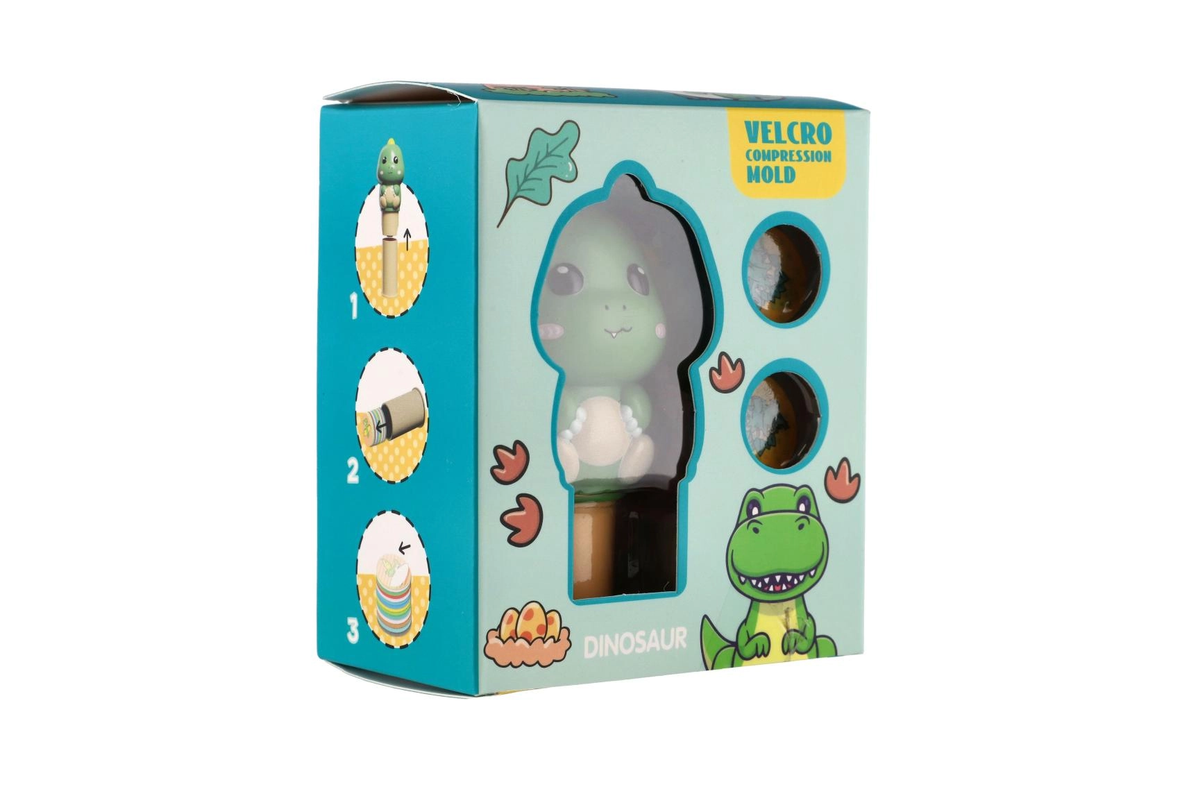 Ta ustvarjalni komplet z dinozavrskim žigom spodbuja otroško domišljijo in fino motoriko. Ergonomska oblika je prilagojena malim rokam, zato je delo z žigom udobno. Del kompleta so barviti samolepilni krogci z motivi dinozavrov in tematski list, kamor lahko otroci lepijo svoje stvaritve.