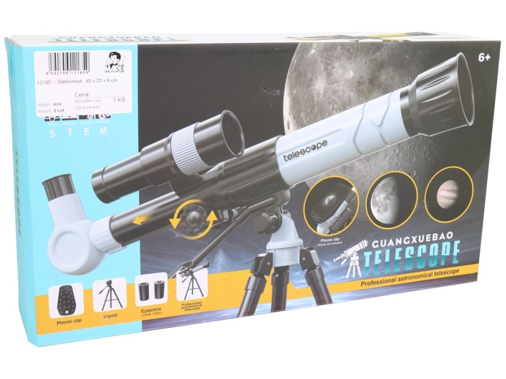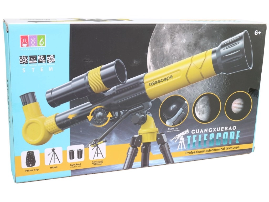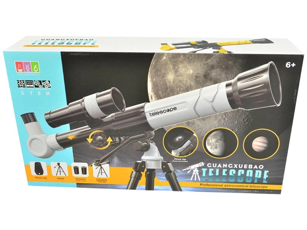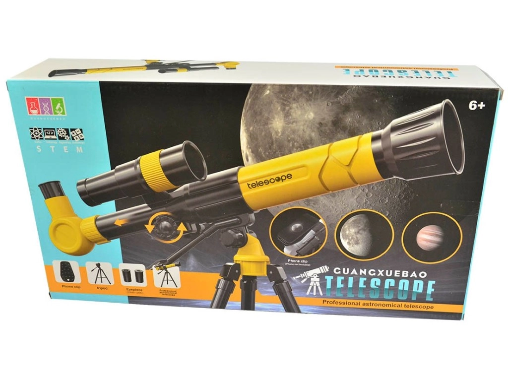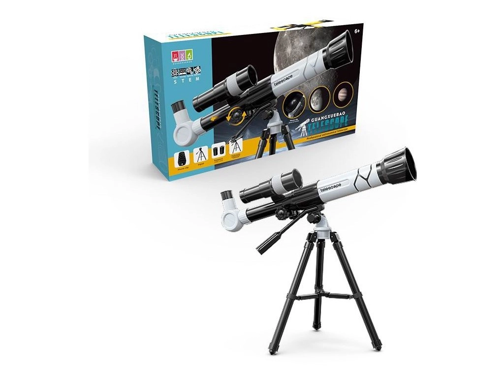 Ta otroški teleskop je zvest posnetek pravega astronomskega instrumenta in odlično spodbuja radovednost ter prve korake v svet astronomije. Zahvaljujoč trem stopnjam povečave 20x / 30x / 40x bodo otroci uživali v opazovanju Lune, zvezd in oddaljenih objektov v pokrajini.