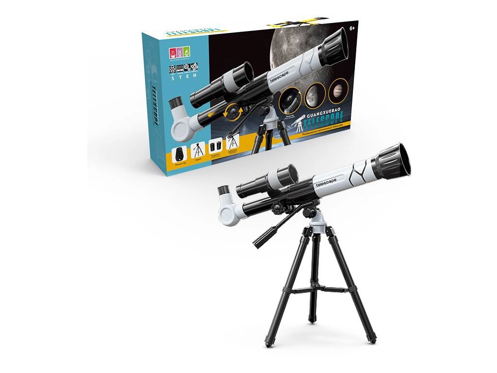 Skupaj z otroki odkrijte lepote nočnega neba in oddaljenih pokrajin s tem realističnim otroškim teleskopom. Ponuja povečavo 20x / 30x / 40x, stabilno stojalo, gladko izostritev in praktično držalo za telefon za enostavno fotografiranje opazovanih objektov.