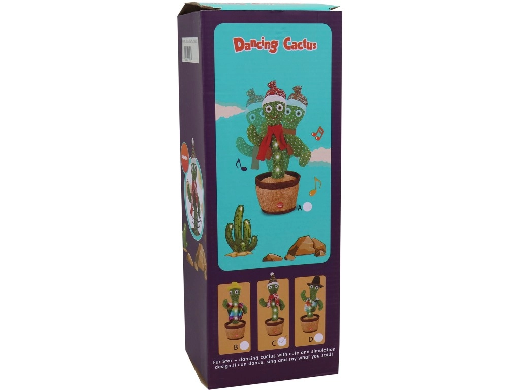 Ta veseli kaktus je idealen spremljevalec za trenutke zabave. Po vklopu se začne vrteti v ples, zasveti in zna ponoviti vse, kar sliši. Zaradi enostavnega upravljanja je primeren za otroke od 3. leta dalje in je odlična izbira za izvirno darilo.