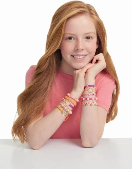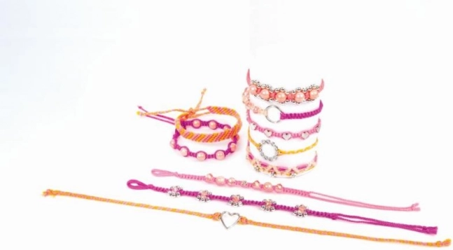 Set vsebuje širok izbor niti in kroglic v živahnih in trendovskih barvah, ki omogočajo ustvarjanje unikatnih dizajnov.