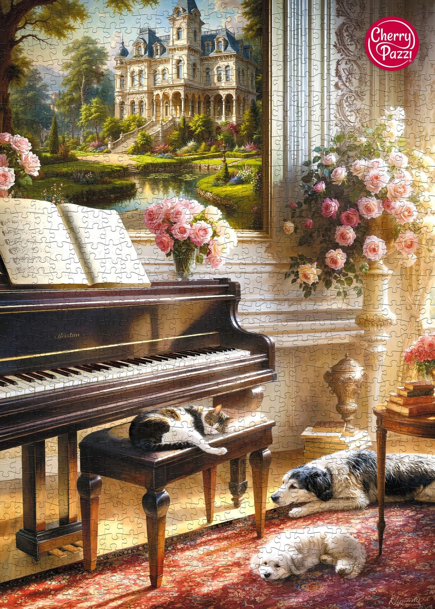 Odkrijte čar elegantne notranjosti s kakovostno sestavljanko CHERRY PAZZI. Ta komplet s 1000 koščki prinaša podroben motiv sobe s klavirjem in po sestavitvi ustvari sliko velikosti približno 50 × 70 cm. Idealno za sprostitev, trening zbranosti in kot dekoracija po uokvirjanju.