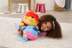 Pozdravite v otroški sobi legendarnega medvedka WINNIE THE POOH iz kolekcije Snuglets. Plišastek v ležečem položaju nežno objame, služi kot mehka opora in udoben vzglavnik za počitek. Zahvaljujoč ultra mehkemu plišu in skrbno izvezenim detajlom deluje prijazno in toplo – prav tako, kot si otroci želijo.