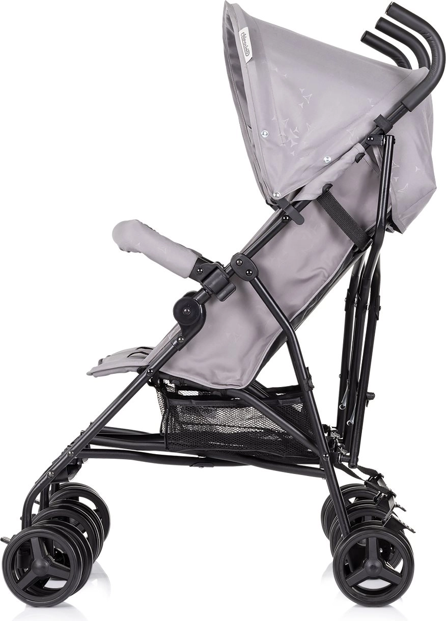 Praktično zlaganje tipa dežnik olajša prenašanje in shranjevanje v prtljažniku avtomobila. Zadnja kolesa s povezano zavoro povečujejo varnost pri ustavljanju, udobni ročaji z visokokakovostnim premazom pa zagotavljajo zanesljiv oprijem. Vsak sedež ima 2 položaja naslonjala za počitek ali opazovanje okolice. Voziček je izdelan v skladu s standardom EN 1888-1 + A1:2022.