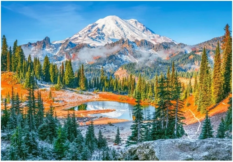 Odkrijte čar mogočnih naravnih lepot s puzzli, ki prikazujejo veličastni Mount Rainier. S 1000 natančno izrezanimi koščki boste uživali v zabavi in sprostitvi, končna slika pa bo odlično izstopala na steni ali pod steklom.