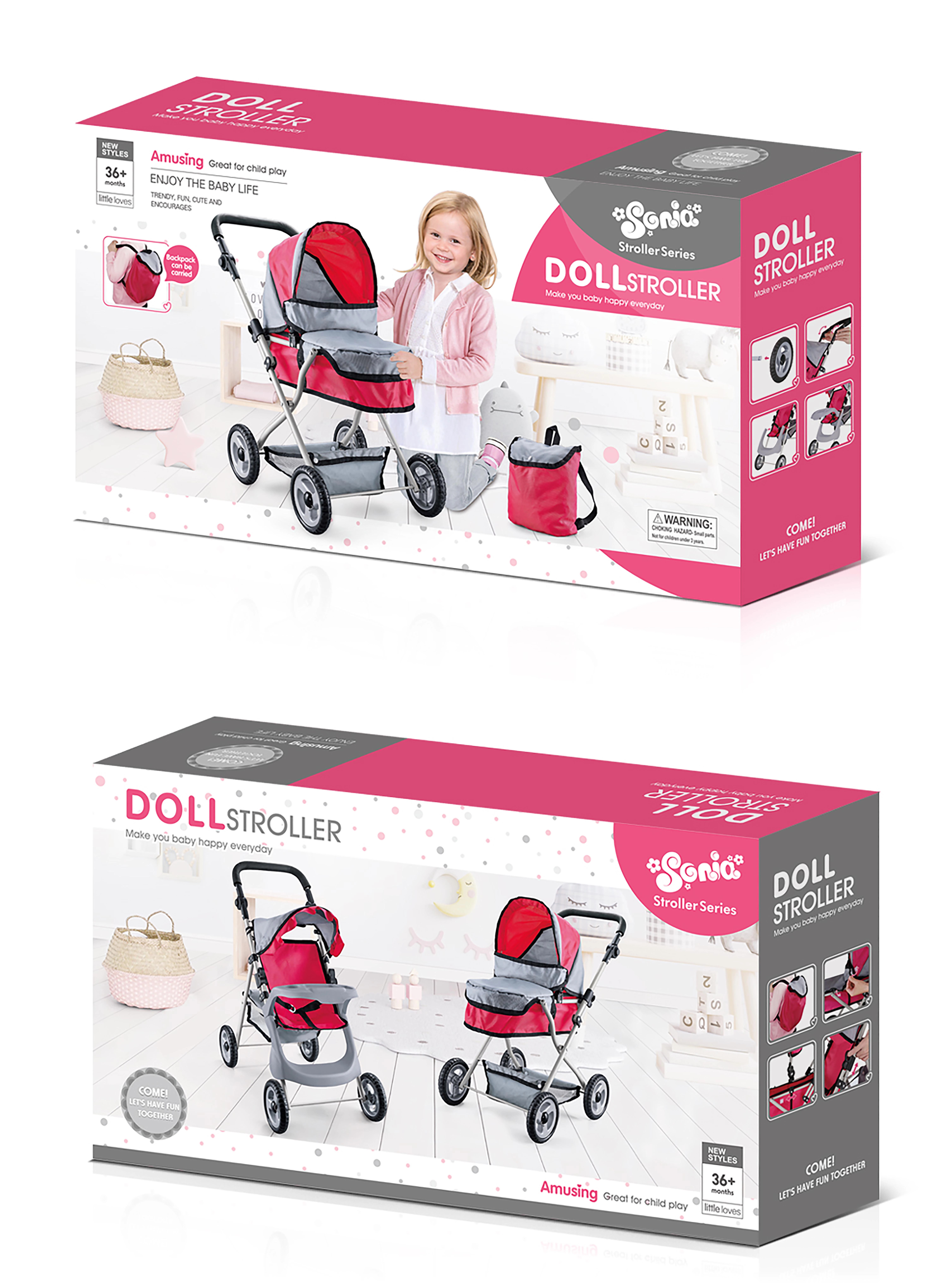 Voziček je zasnovan tako, da ga otroci zlahka upravljajo doma in na prostem. Njegove mere 37,5 × 64,5 × 66,5 cm ga delajo praktičen dodatek za igro, ki hkrati spodbuja razvoj ustvarjalnosti in fine motorike.