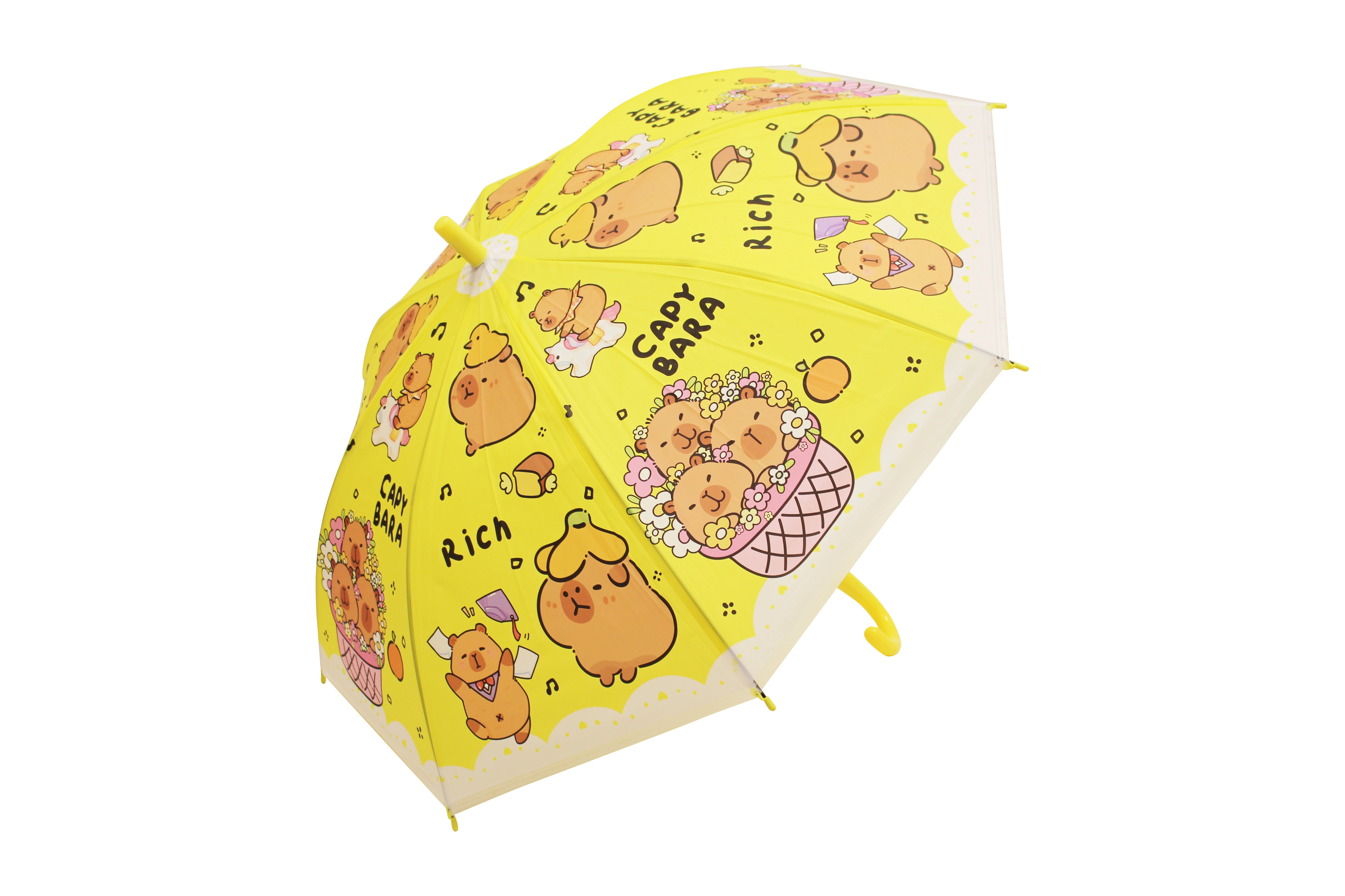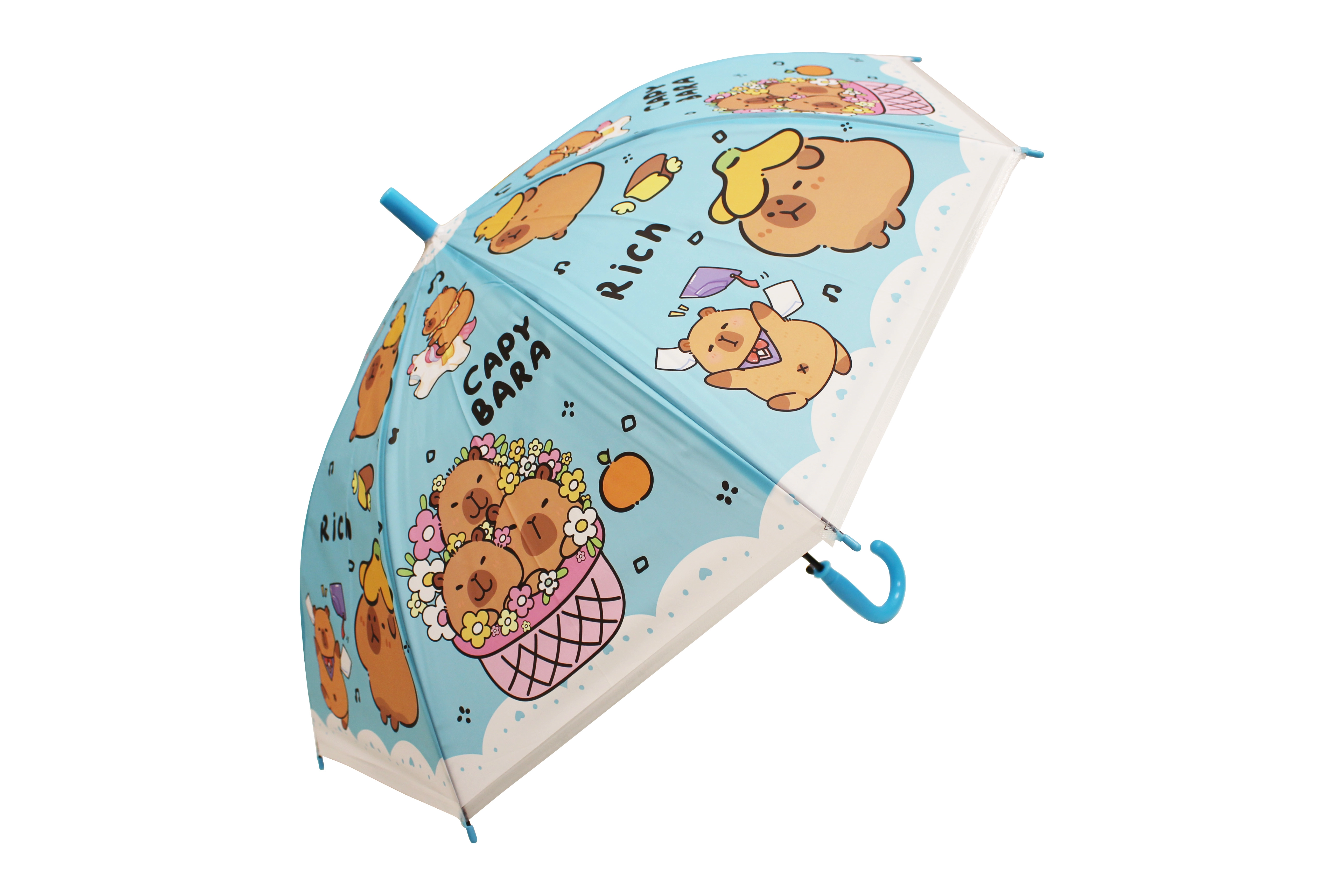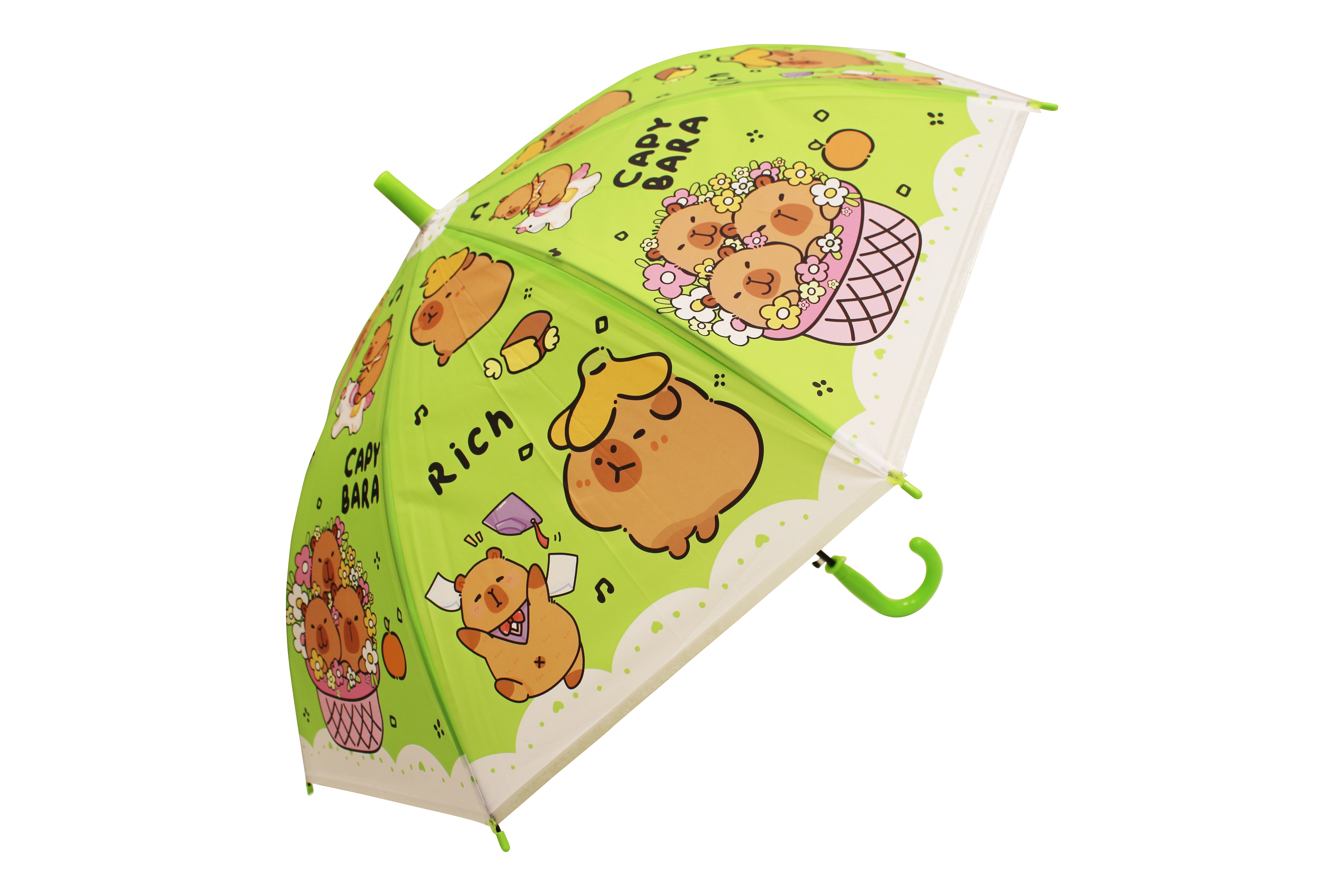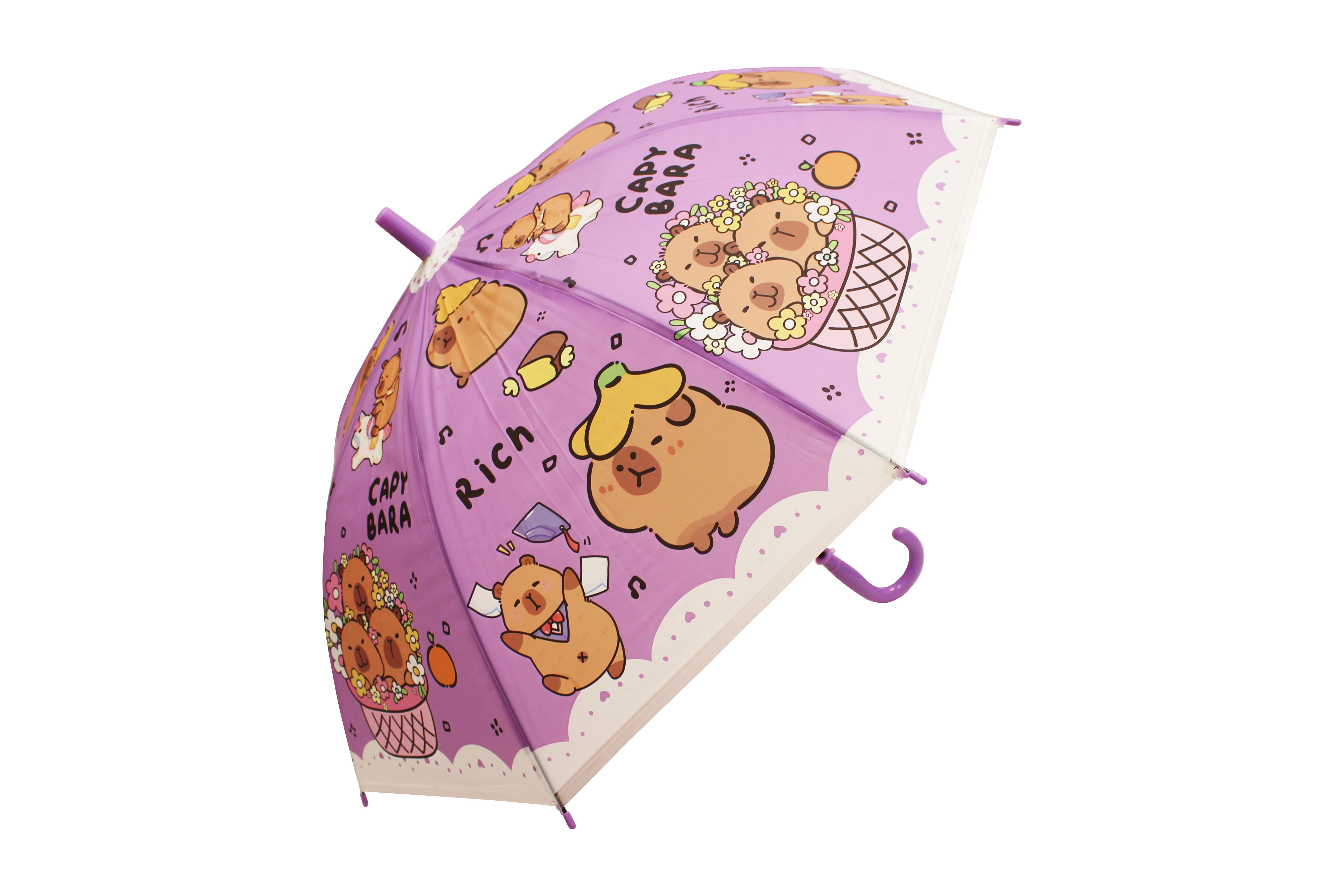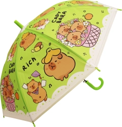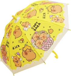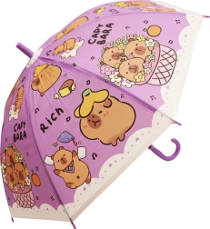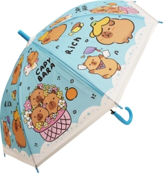 Otroški dežnik s kapibaro dolžine 50 cm ponuja zanesljivo zaščito pred dežjem in vesel videz, ki ga bodo otroci vzljubili. Barvne različice (modra, zelena, rumena, vijolična) s potiskom »CAPYBARA« in prisrčnimi ilustracijami ga naredijo za stilski dodatek za vrtec in sprehode.