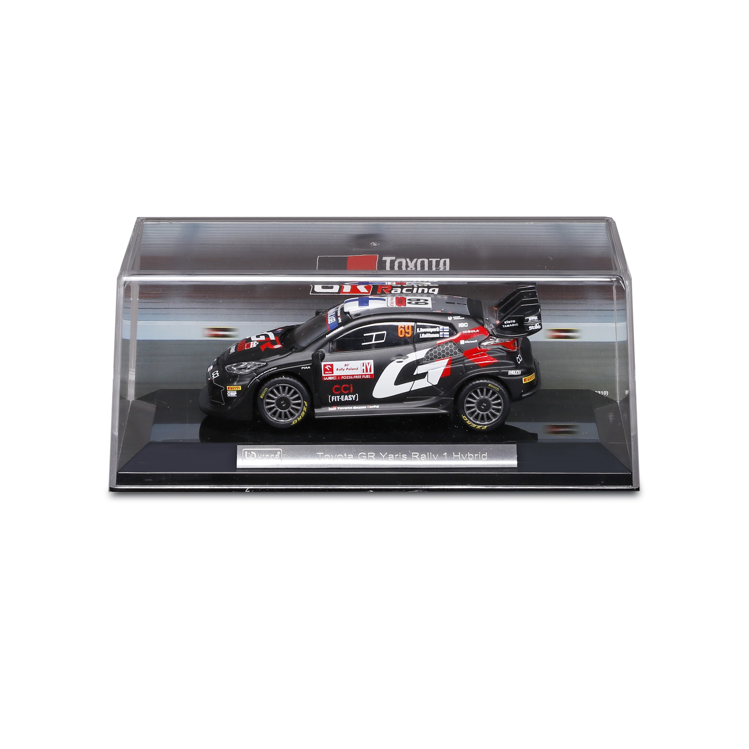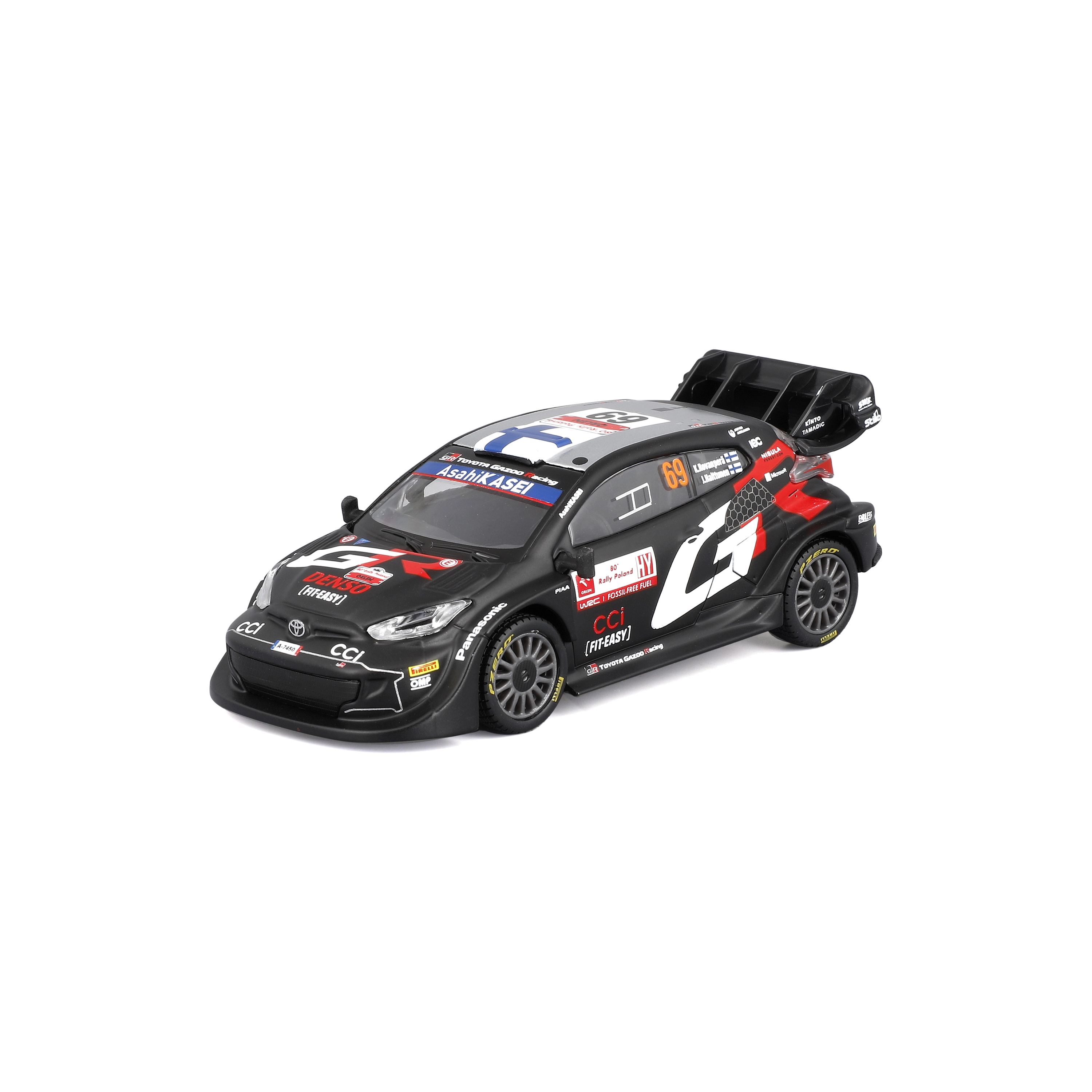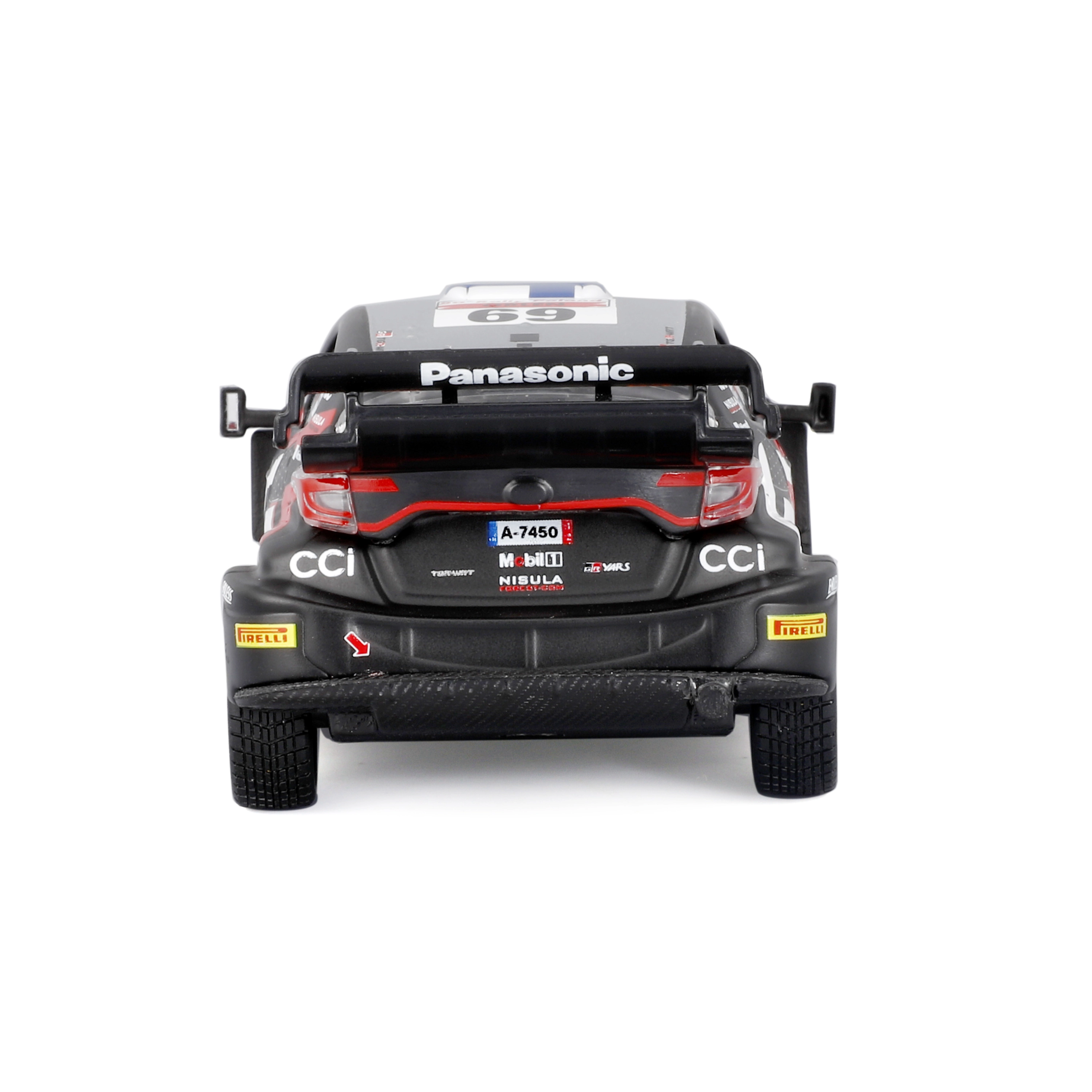 Podrobni potiski sponzorjev, natančne barve in startna številka 69 poudarjajo realističen videz posebnega modela GR Yaris Rally1 Hybrid.