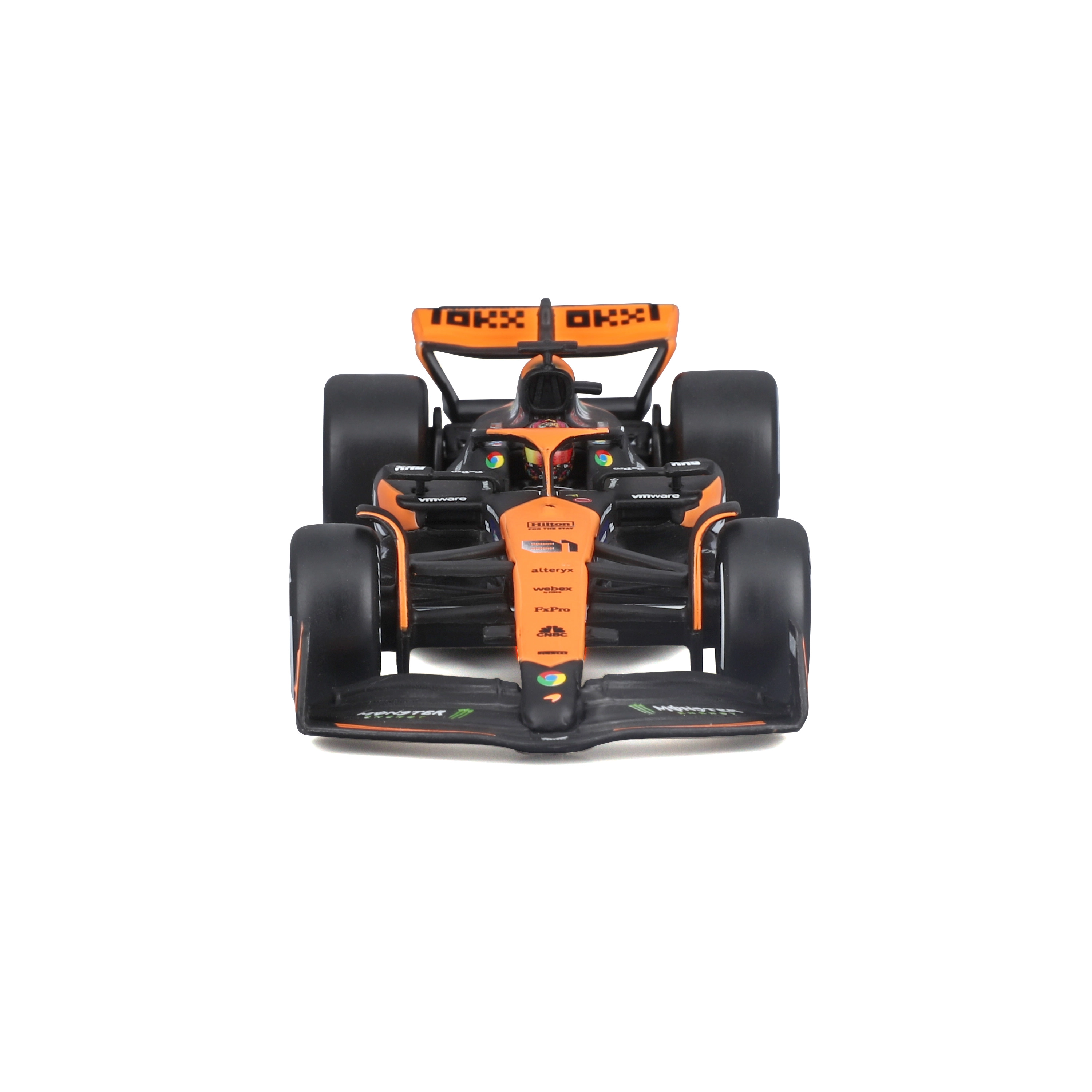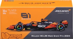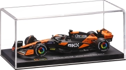 Ta podrobno izdelan model McLaren MCL38 v merilu 1:43 predstavlja barve ekipe za sezono 2024 in posebno Senna Edition. Ponuja realistične aerodinamične elemente, natančno oblikovana sprednje in zadnje krilo, kokpit z figuro dirkača ter avtentične nalepke sponzorjev. Zaradi kompaktnih mer je idealen za razstavljanje na polici ali pisalni mizi.