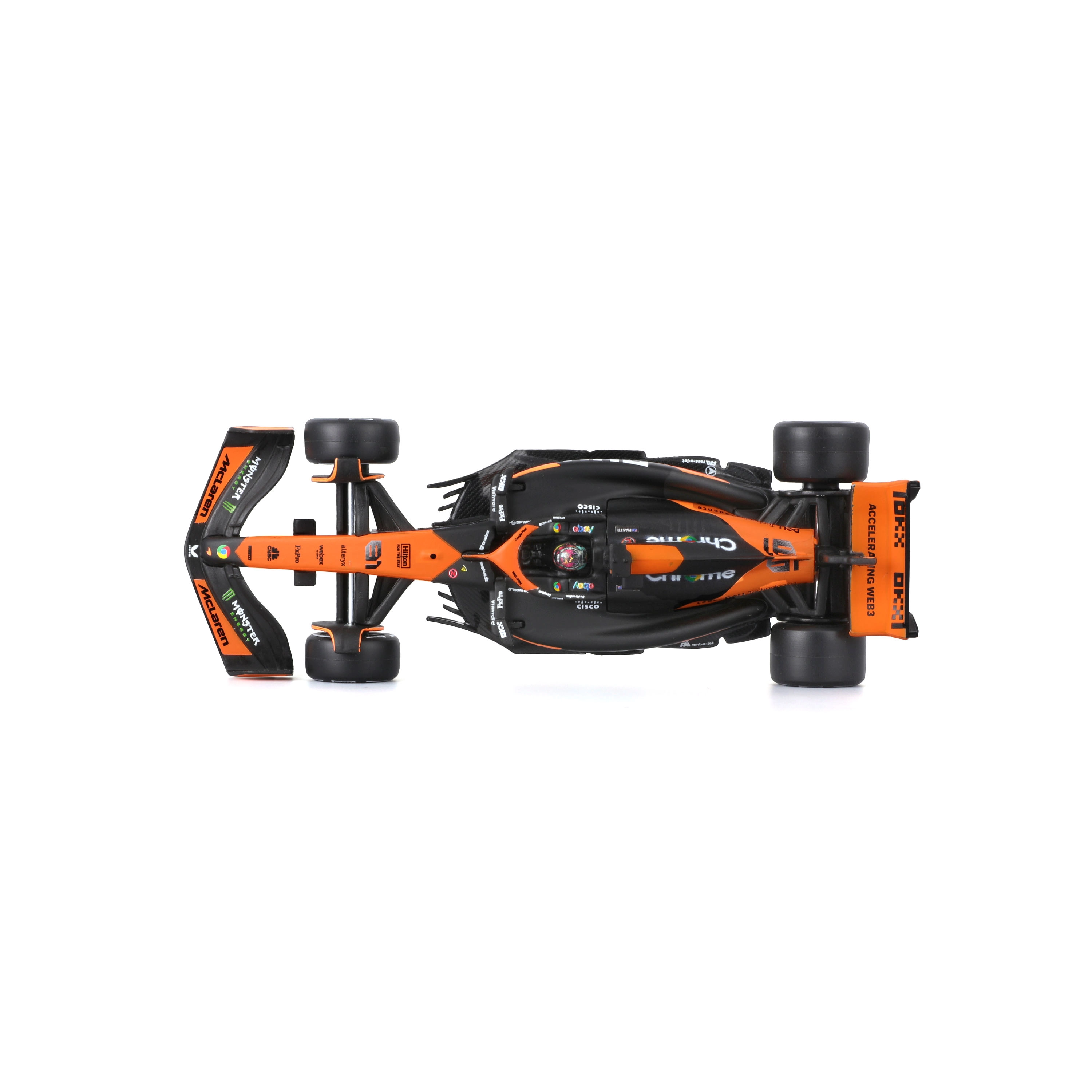 Ikonična kombinacija oranžne in črne z ekipnimi logotipi in dirkalnimi slick pnevmatikami bo razveselila vsakega navdušenca F1.