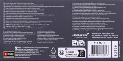 Zahvaljujoč kolesom z valjanjem, podrobni obdelavi podvozja in krilc ter priloženi figurici voznika je idealna za vitrino ali kot darilo za ljubitelje F1. Del pakiranja je dekorativna škatla, ki model ščiti in hkrati poudarja njegovo zbirateljsko vrednost.