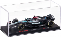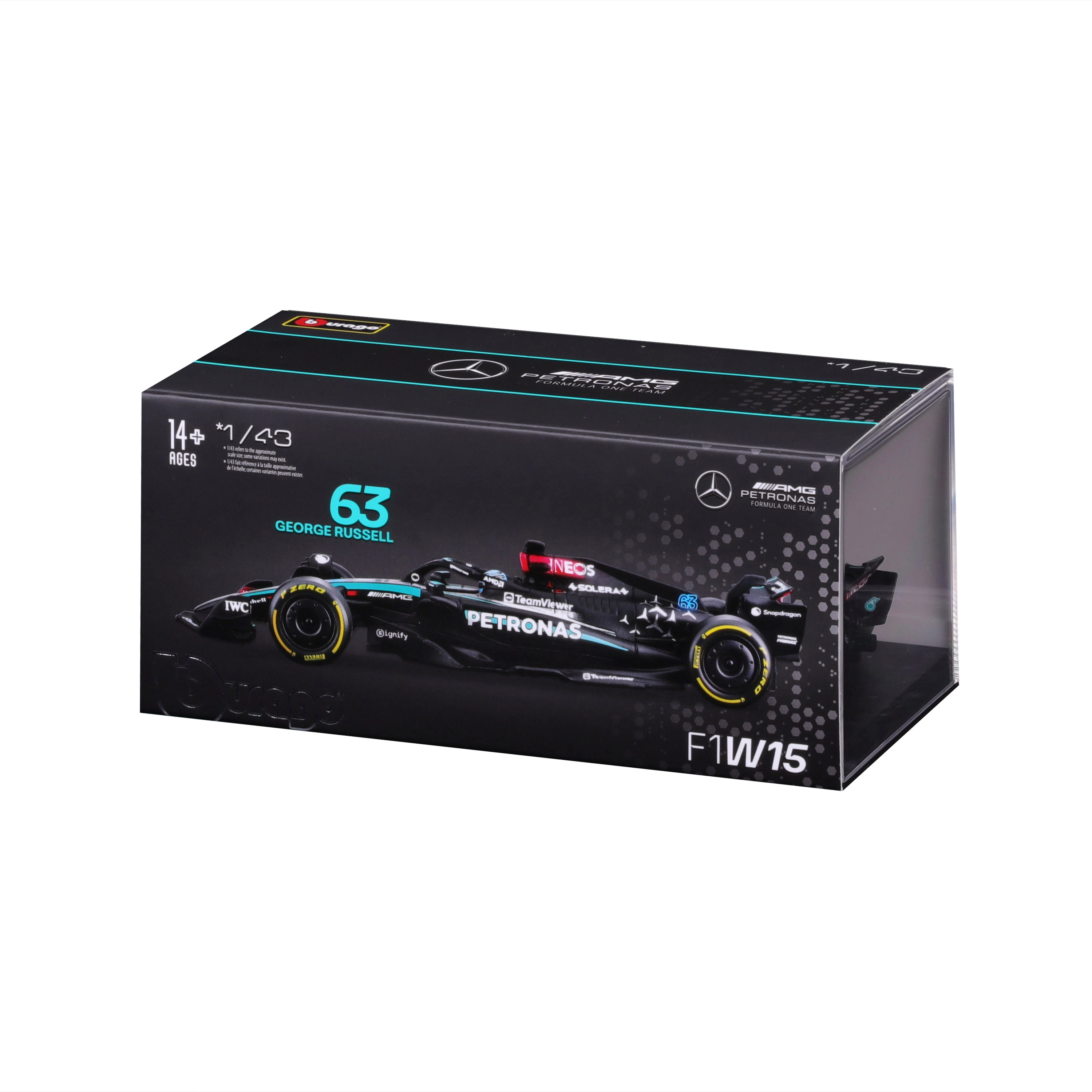 Privoščite si avtentični model enosedežnika MERCEDES‑AMG PETRONAS F1 W15 v merilu 1:43. Ta uradno licencirana miniaturna različica Bburago verno povzema črno barvo s turkiznimi poudarki, sponzorske logotipe in značilne linije dirkalnika sezone 2024 voznika Georgea Russella.