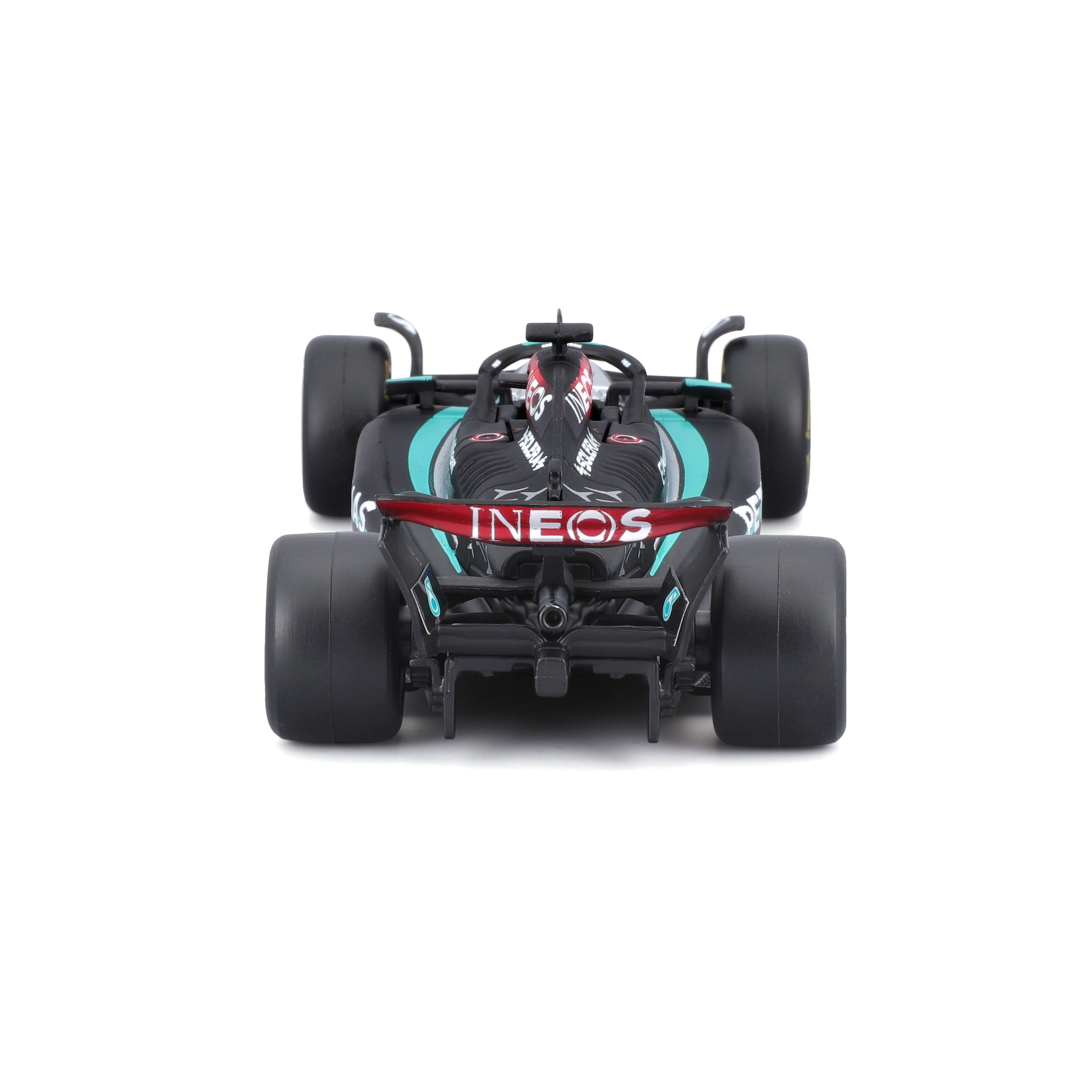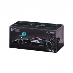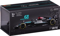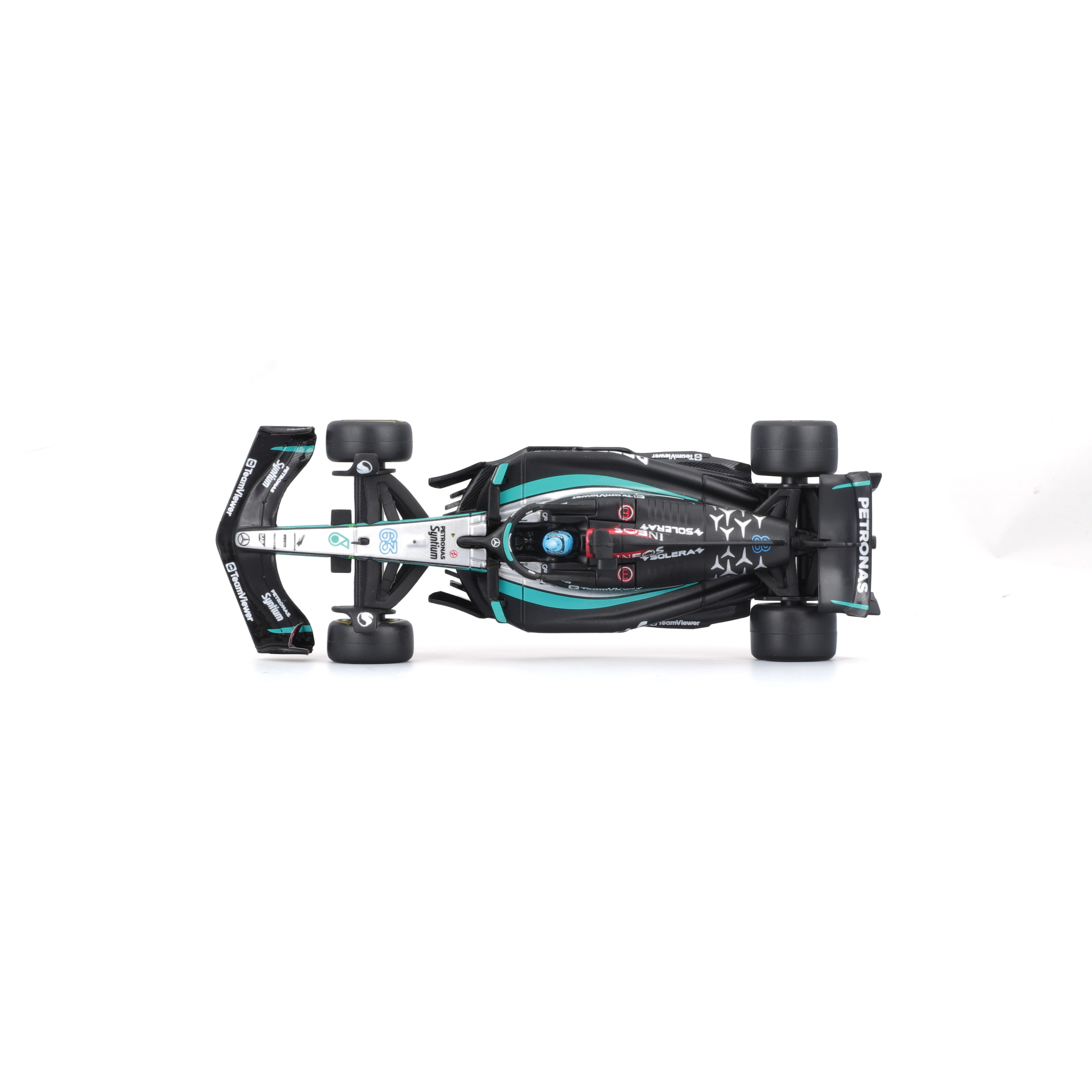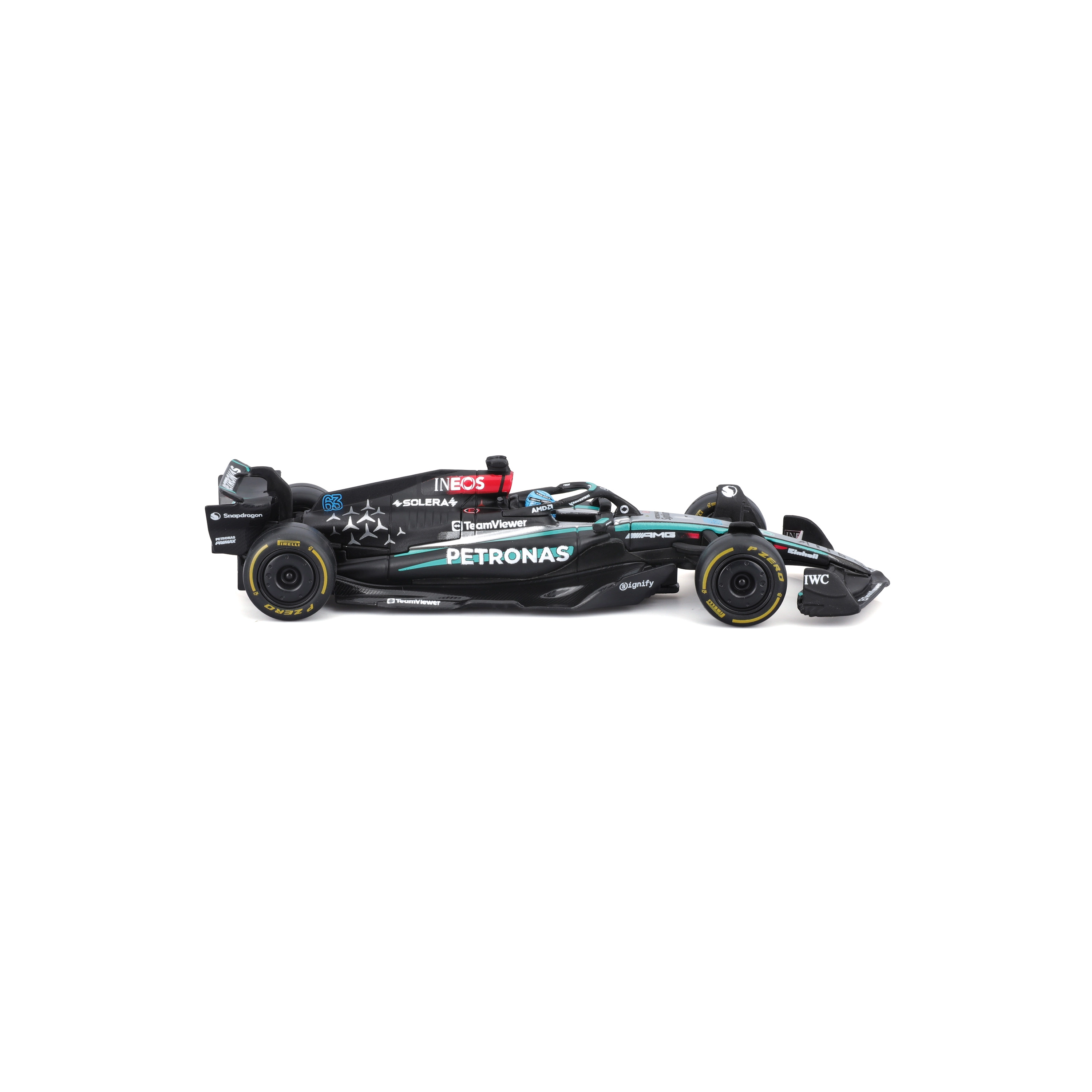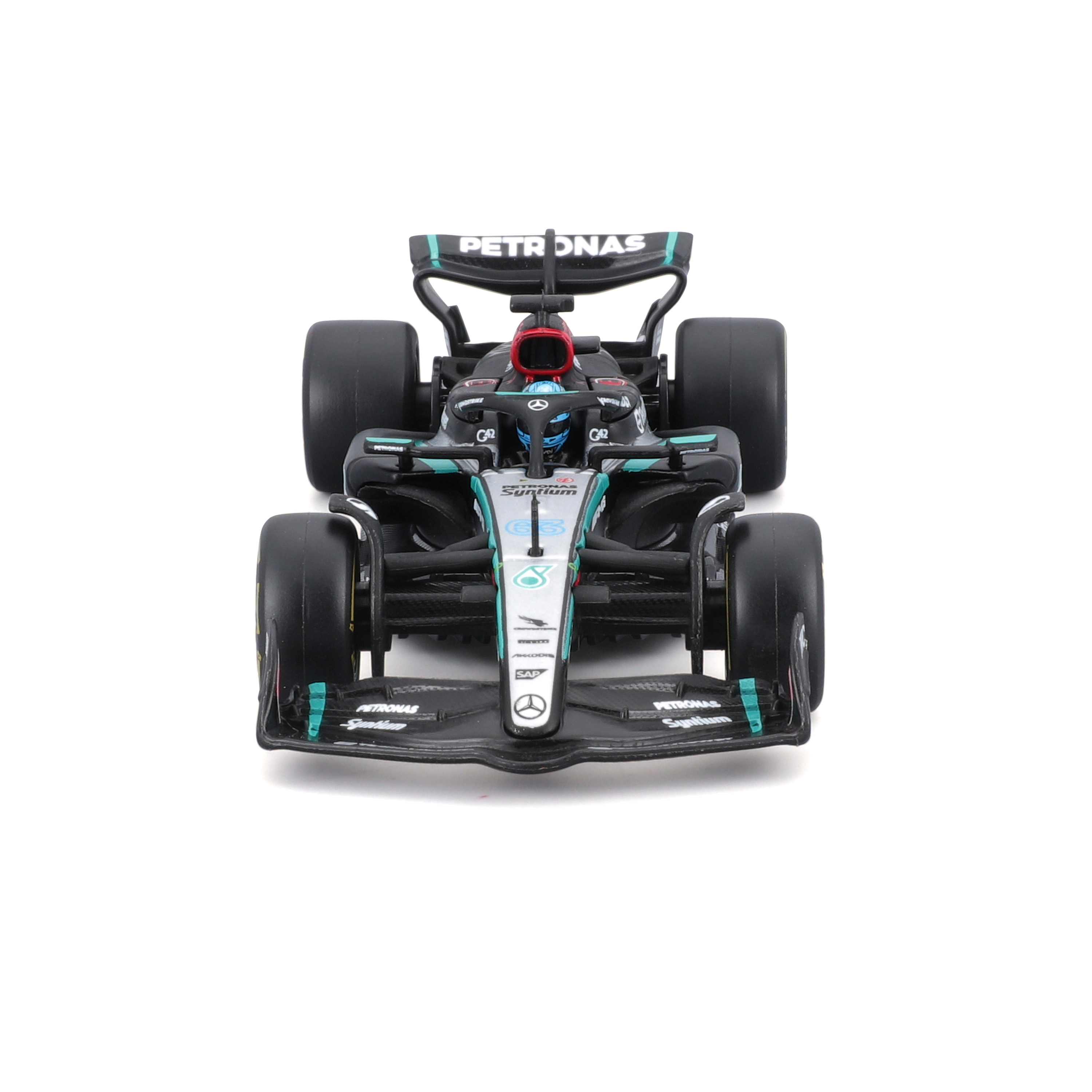 Natančna poslikava, aerodinamični elementi in verne proporcije zajamejo dirkalnik MERCEDES‑AMG PETRONAS F1 W15 sezone 2024 s številko 63.