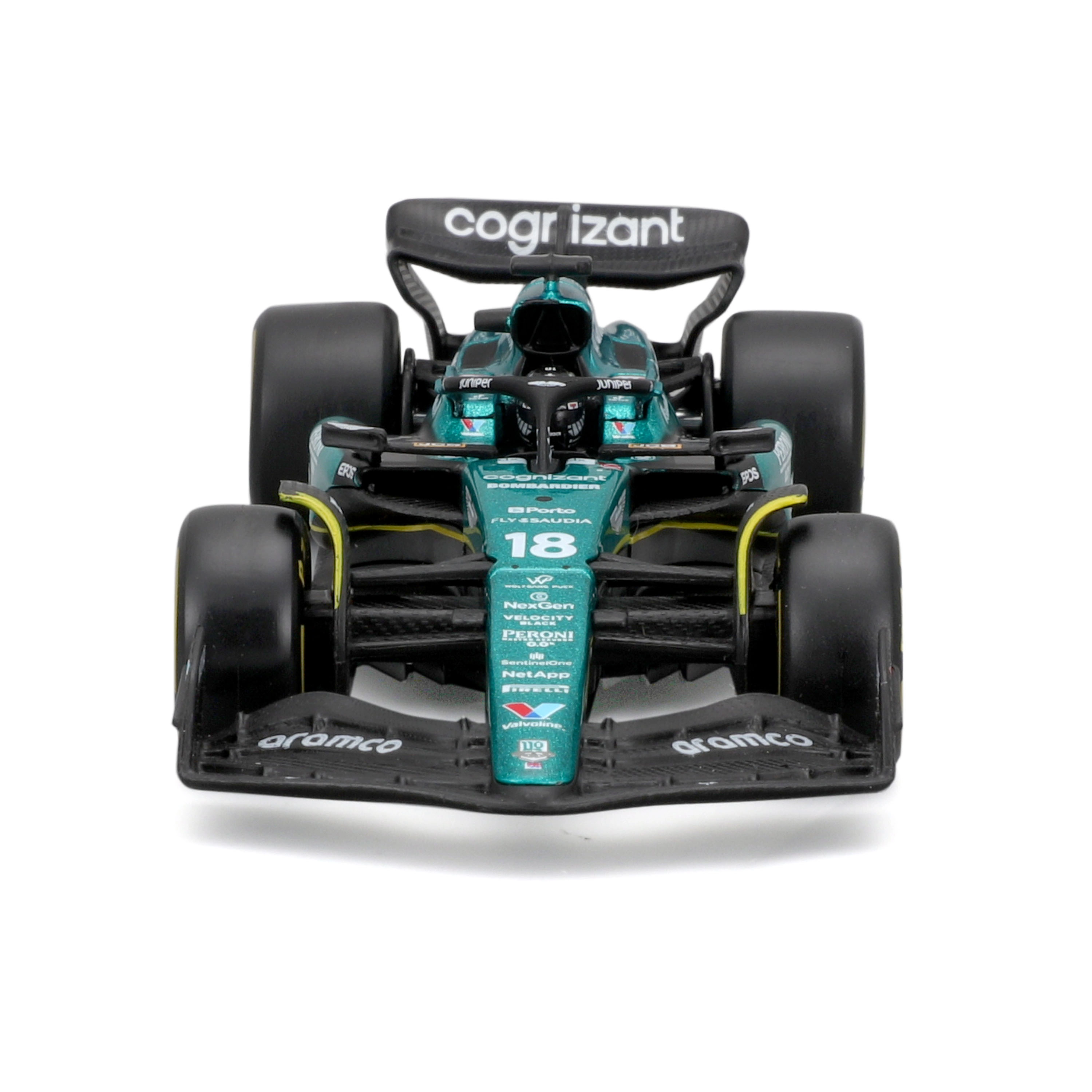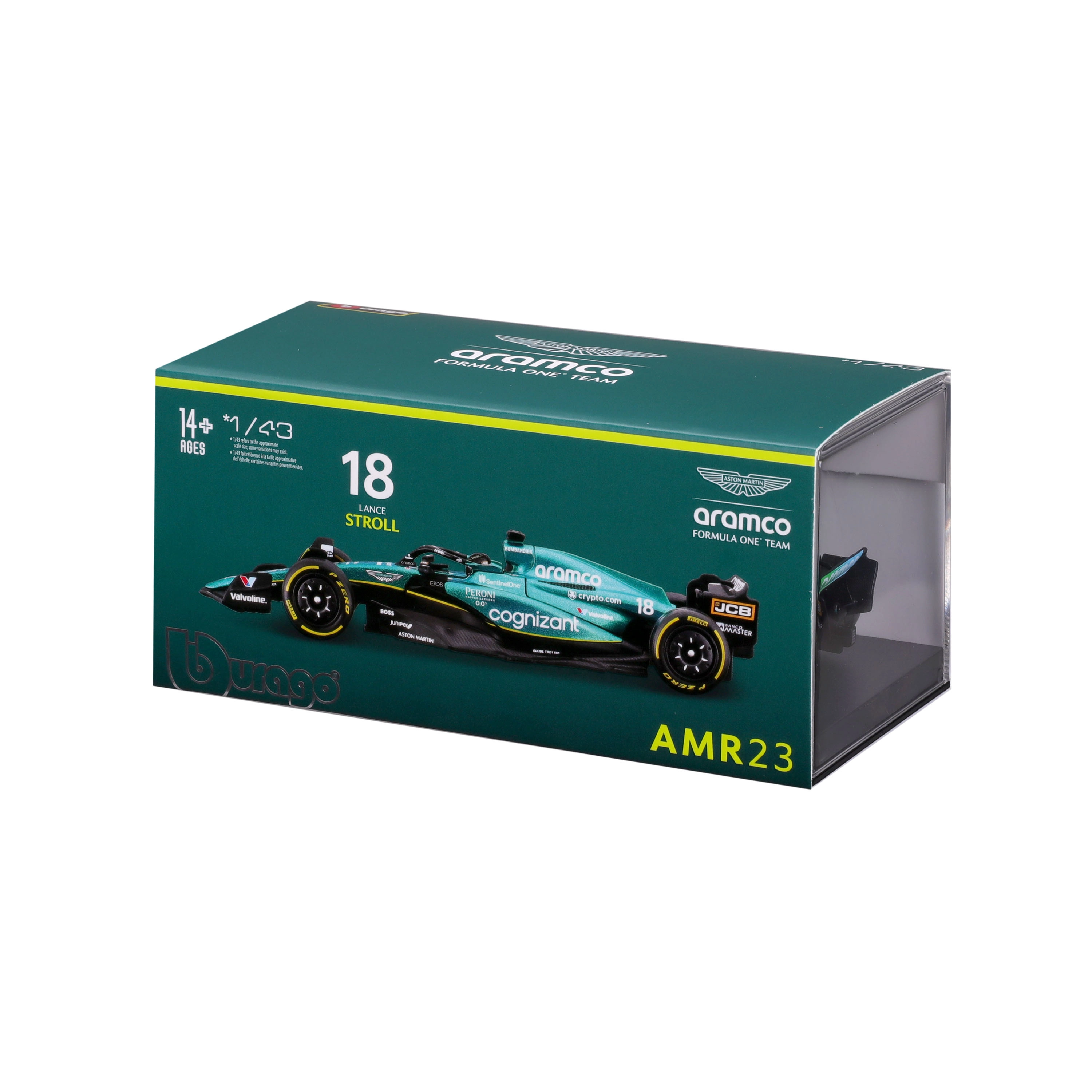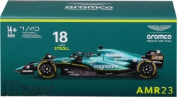 Ta natančno izdelan model Aston Martin AMR23 v merilu 1:43 verno povzema oblike enosedeža iz sezone 2023 s številko 18, ki ga vozi Lance Stroll. Izstopa z avtentičnim lakom v dirkaško zeleni, podrobnimi logotipi sponzorjev ter natančno izvedenimi krili, difuzorjem in varnostnim obročem halo.