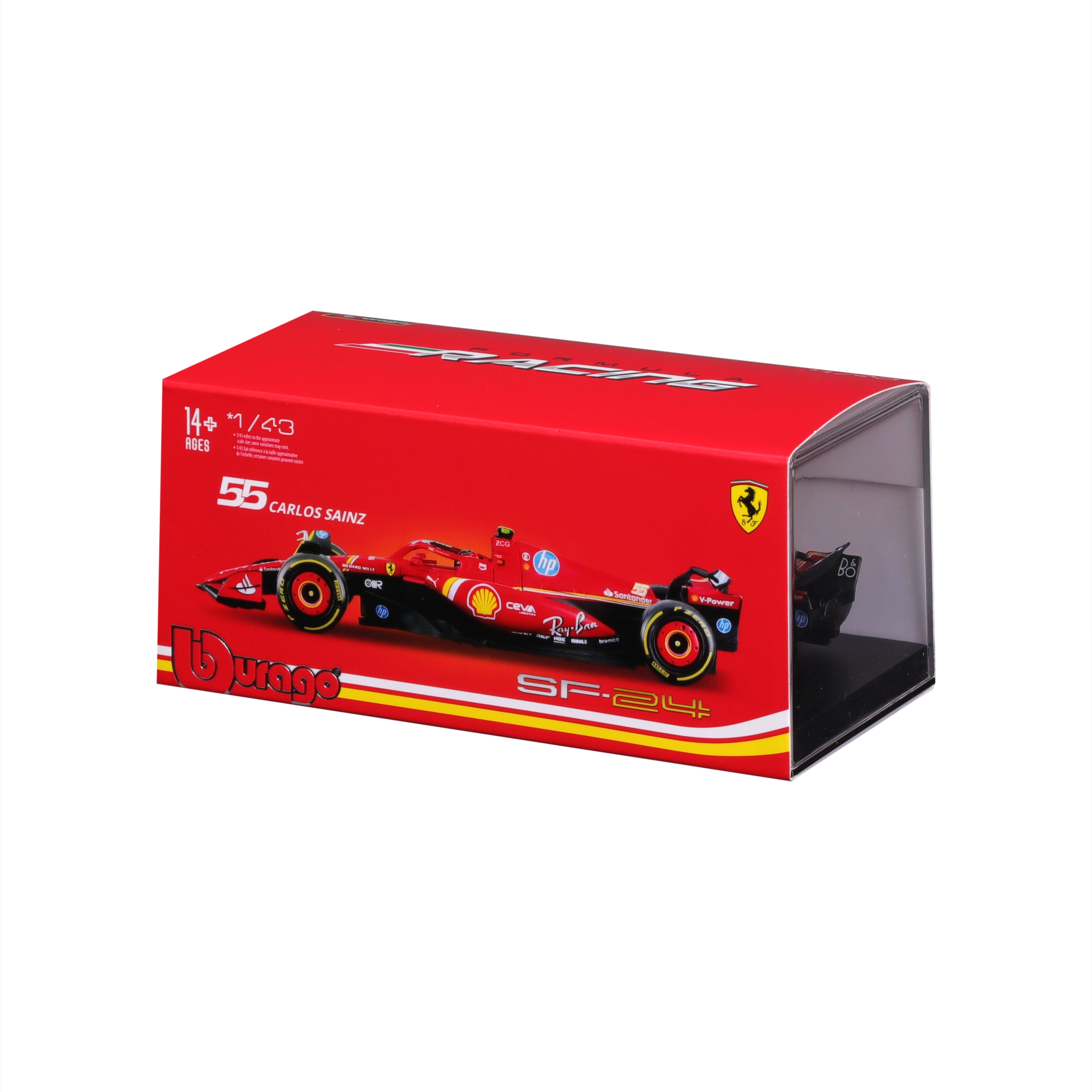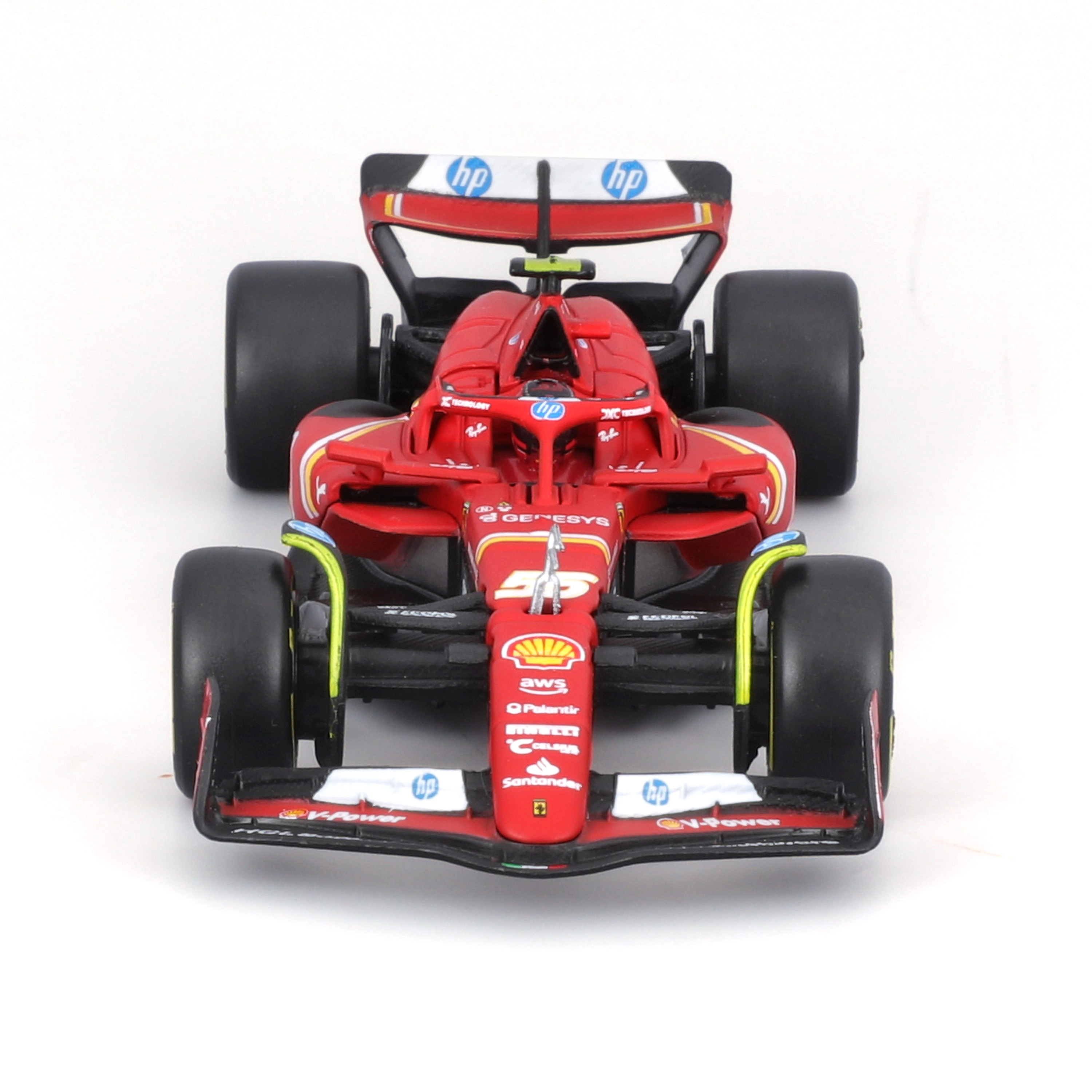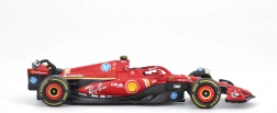 Uživajte v vrhunskem zbirateljskem doživetju s precizno izdelanim modelom Ferrari SF-24 (2024) v merilu 1:43. Replika prinaša avtentično dirkaško livrejo, aerodinamične elemente, halo, kokpit z dirkačem Carlosom Sainzom (#55) in kakovosten potisk sponzorjev.