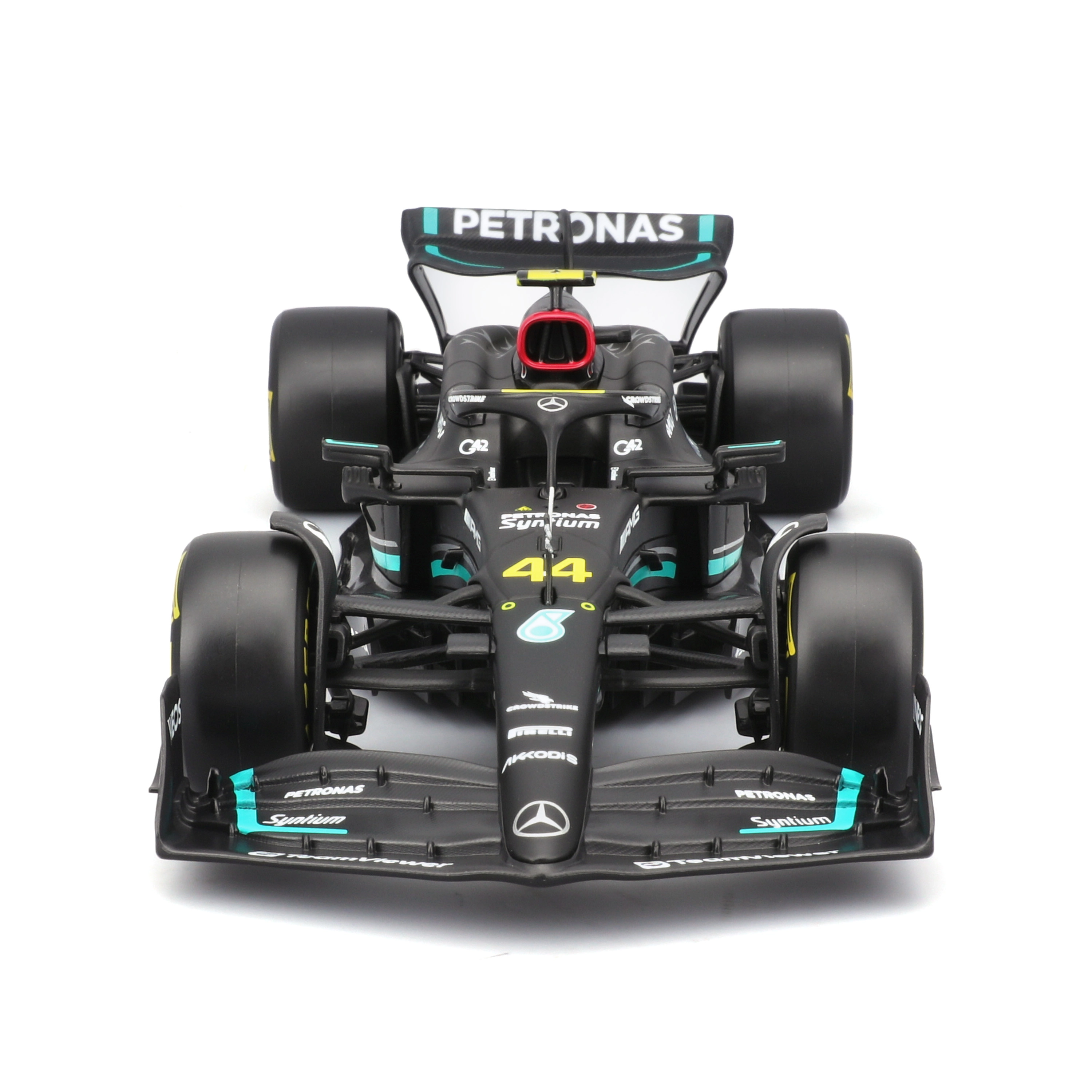 Podrobna karoserija, natančni aero elementi in avtentična barvna kombinacija PETRONAS poudarjajo dirkaški DNK tega enosedežnika.