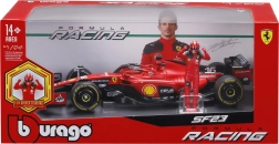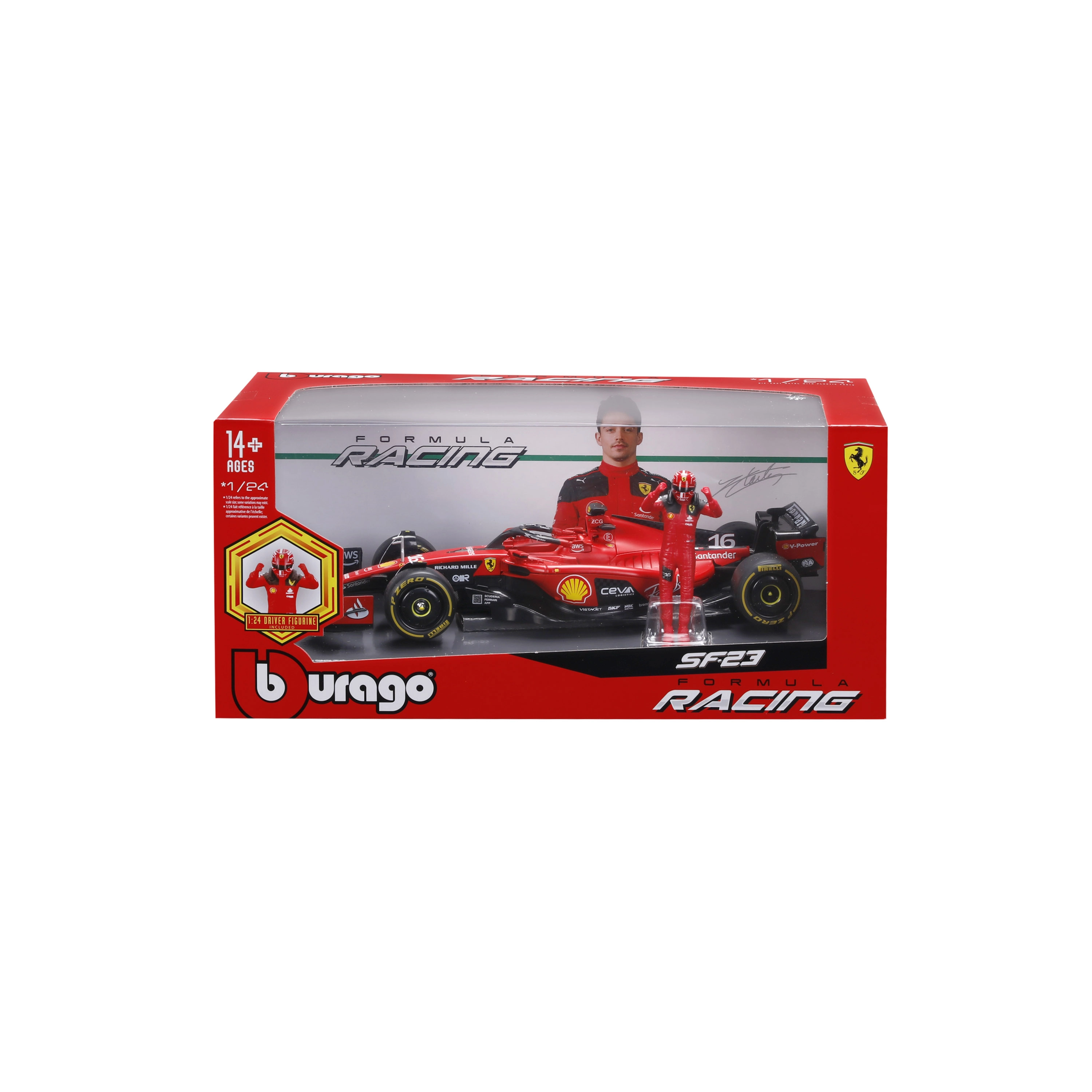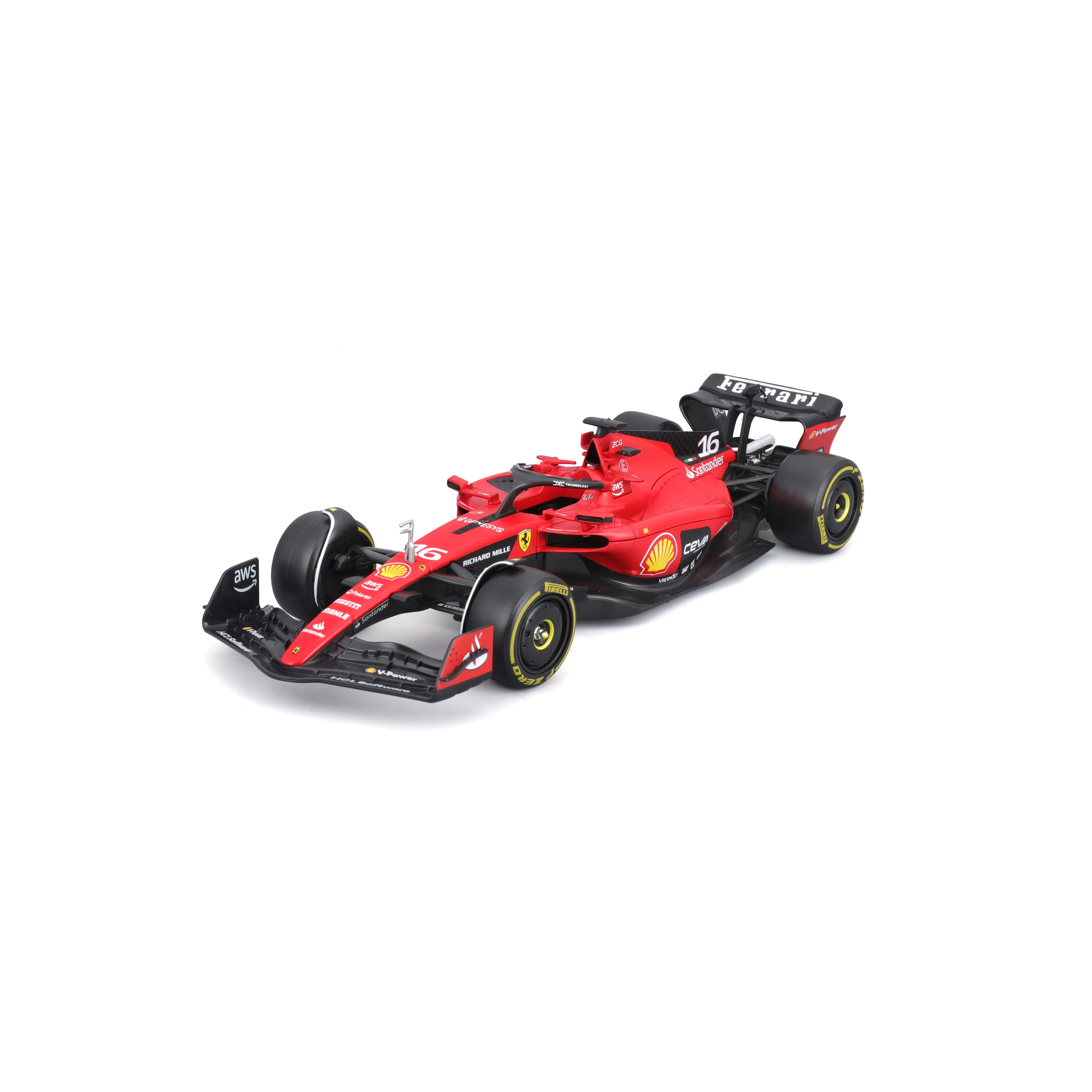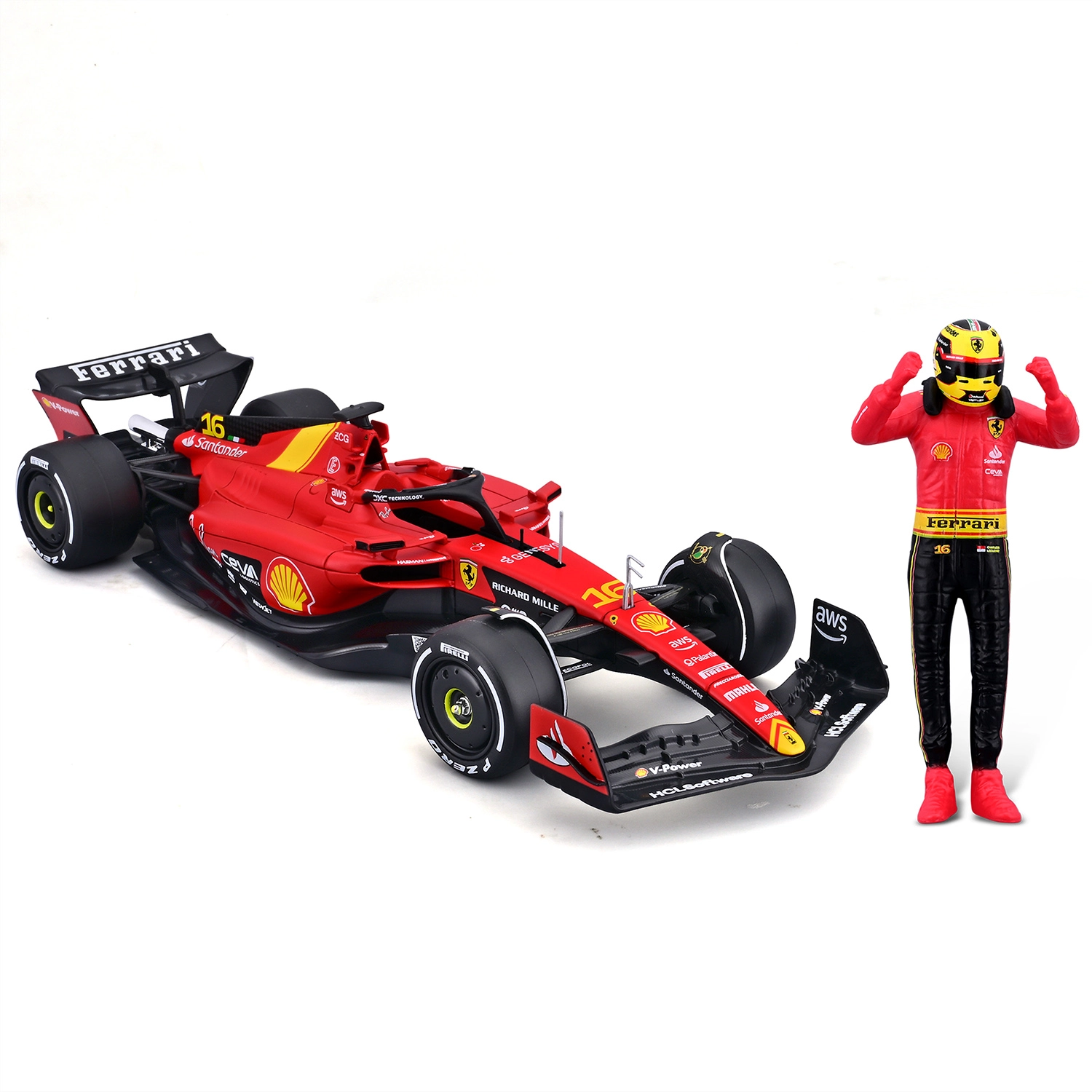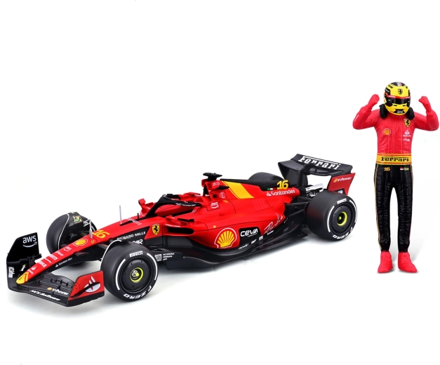 Doživite vzdušje kraljice motošporta s precizno izdelanim modelom Ferrari SF23 (2023). Kovinsko ohišje z nežnimi linijami, aerodinamični elementi, sprednje in zadnje krilce, zaščitni lok halo ter avtentične poslikave sponzorjev naredijo ta kos za popoln dodatek vsaki zbirki.