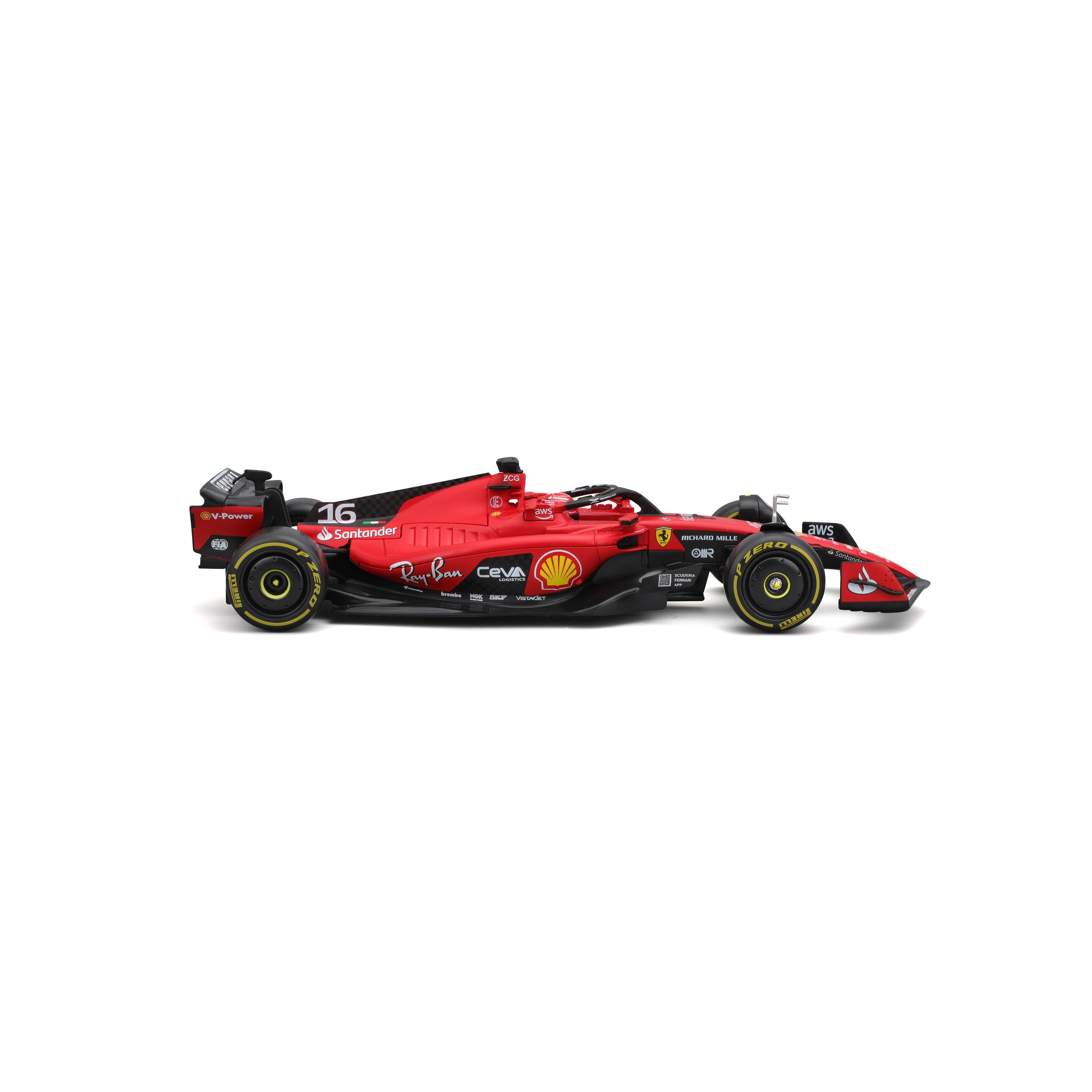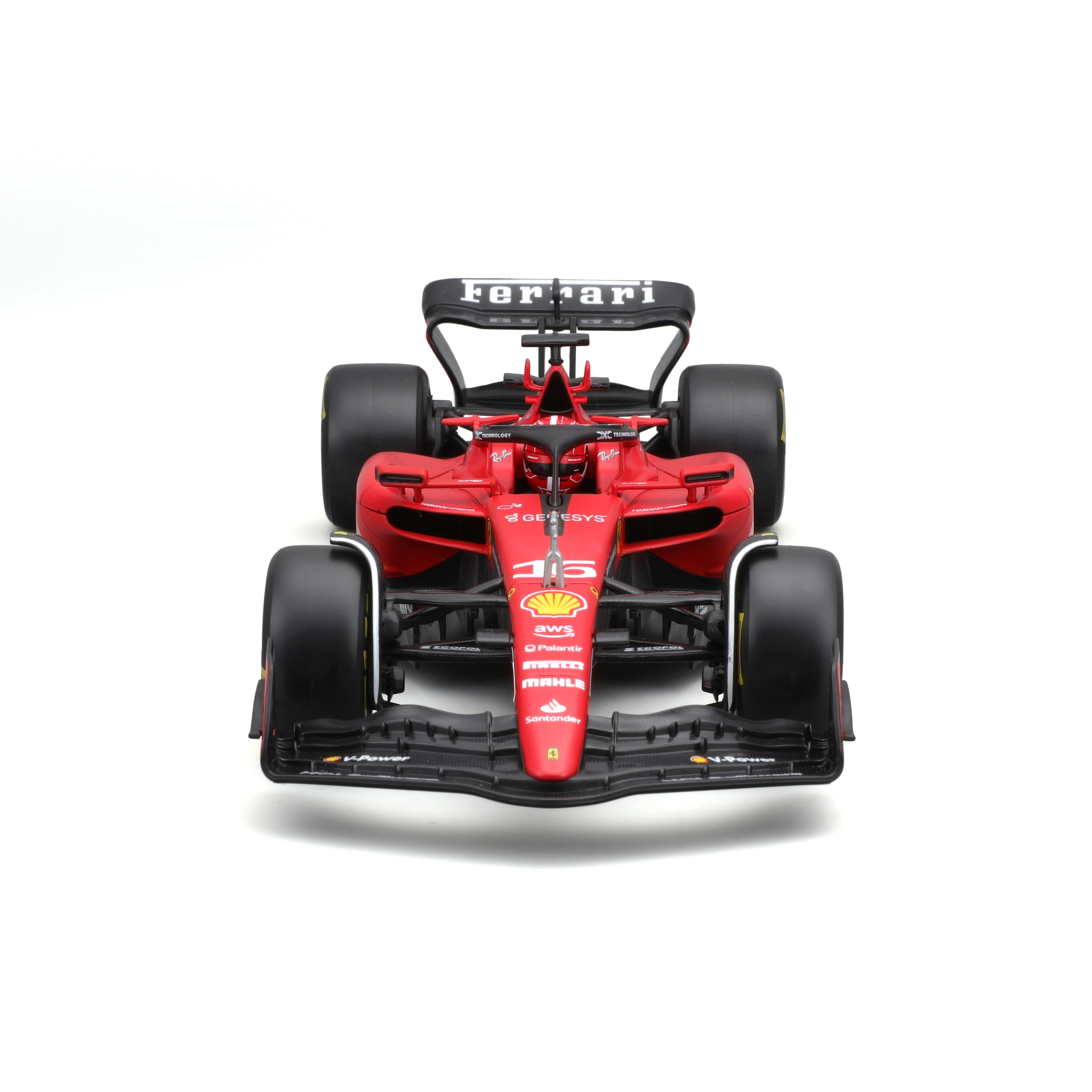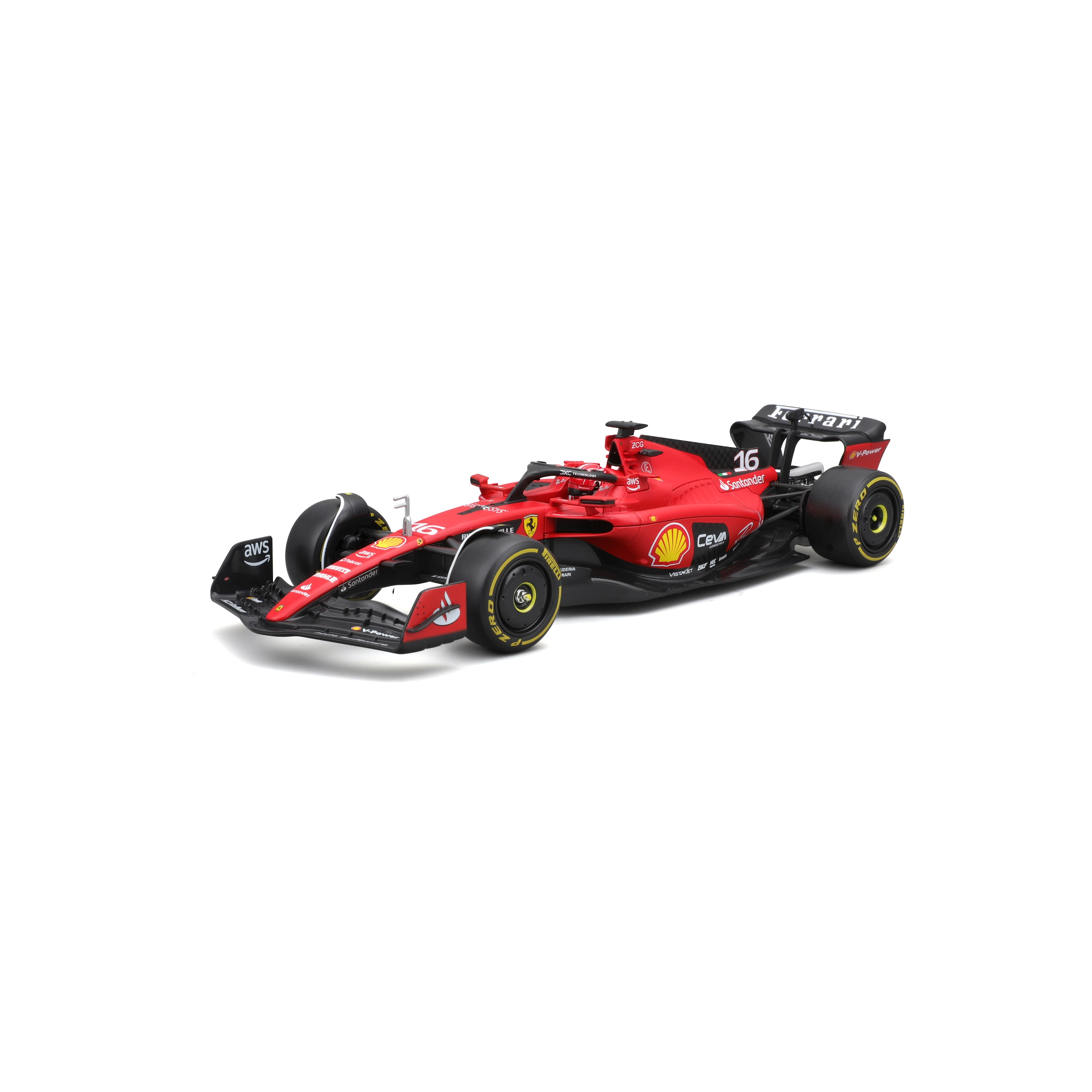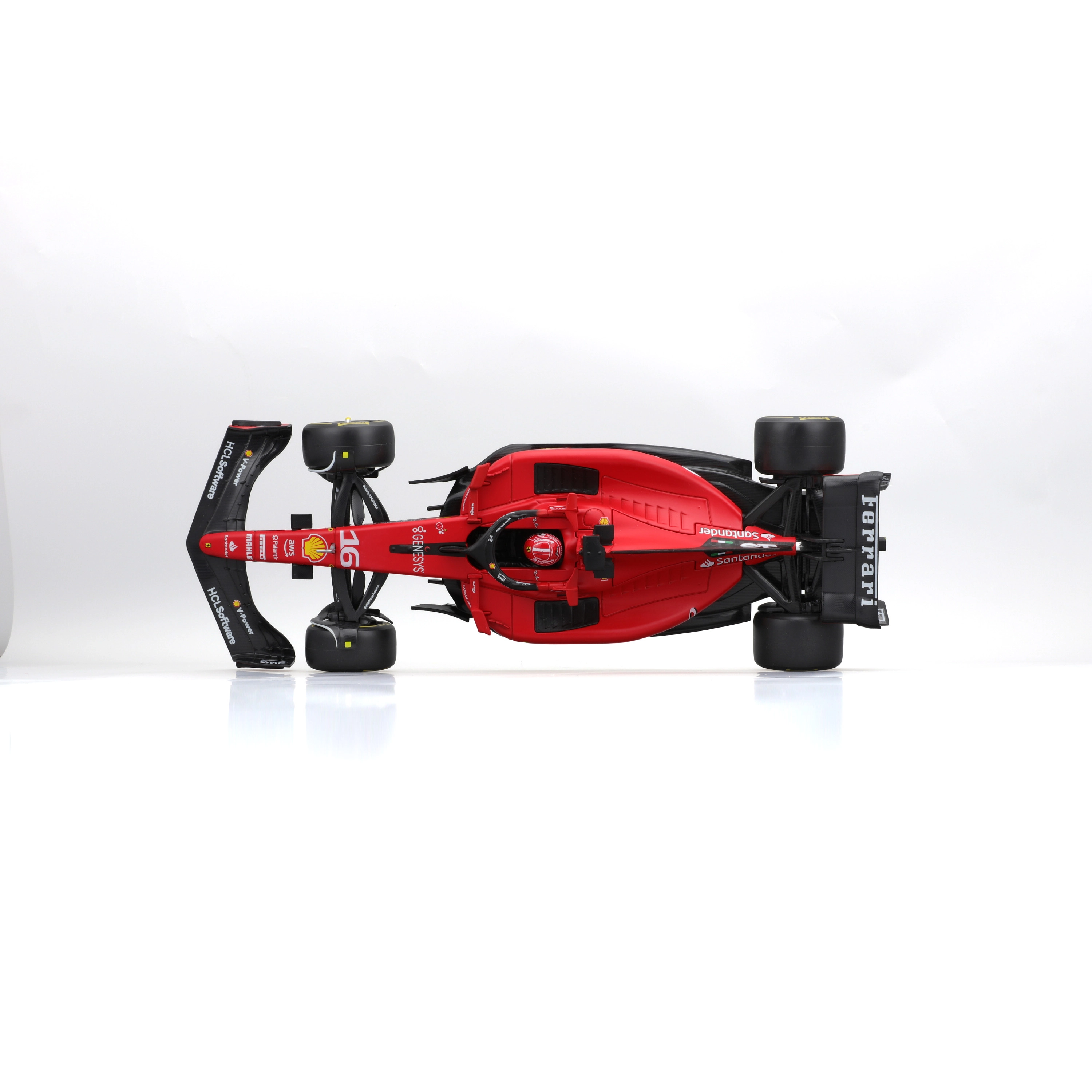 Zvesti obrisi karoserije, aerodinamična krilca, halo in natančni sponzorski potiski s številko 16 za navijače Charlesa Leclerca.