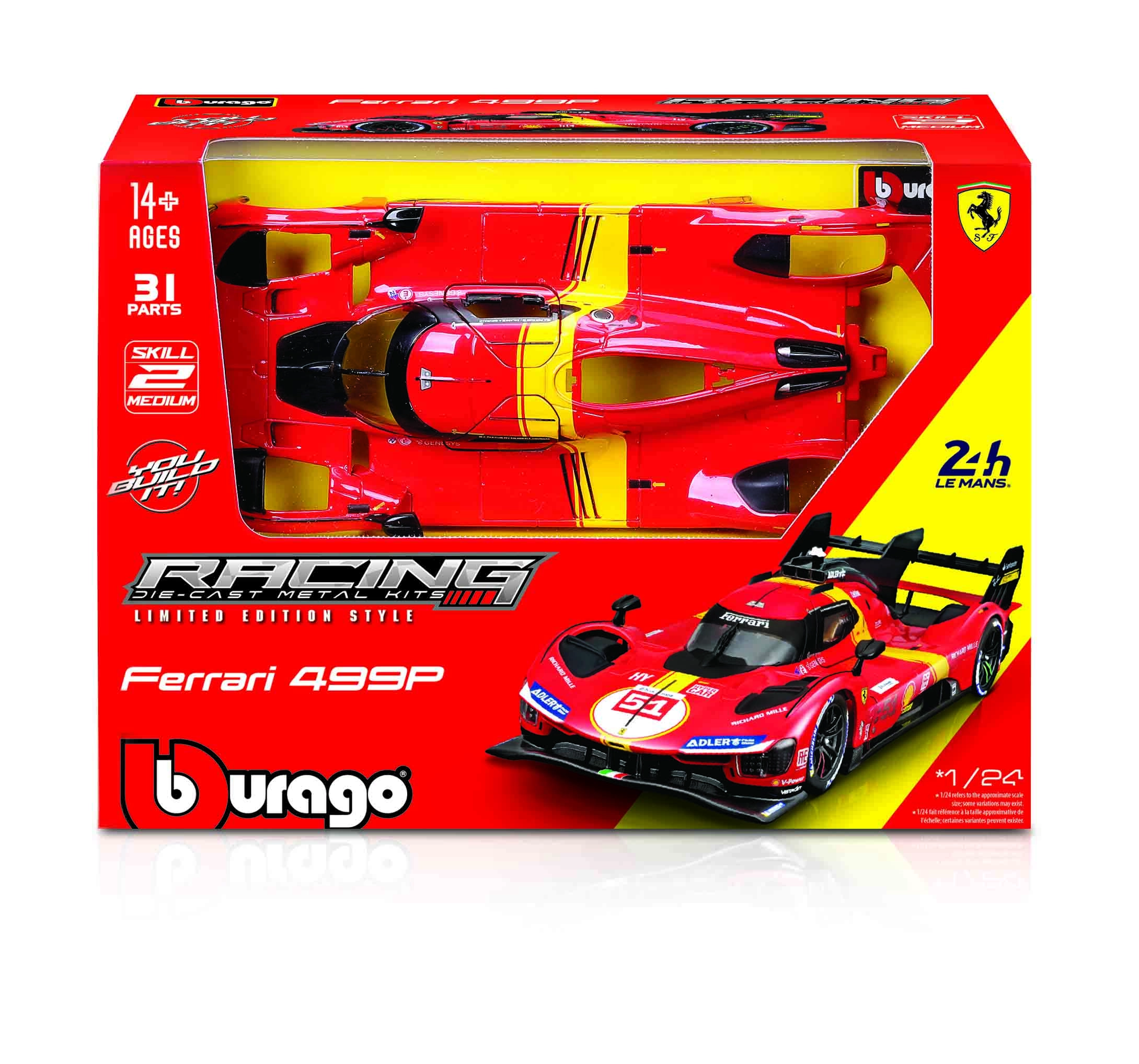 Sestavite ikoni prototip dirkalnega vozila z modelom Ferrari 499P št. 51 s slovitega dogodka 24 ur Le Mansa v merilu 1:24 znamke Bburago. Sestavljanka Racing Model Kit navduši z dovršeno izdelavo, kakovostnimi deli in odličnim razmerjem med ceno in zabavo za male in velike ljubitelje motošporta.