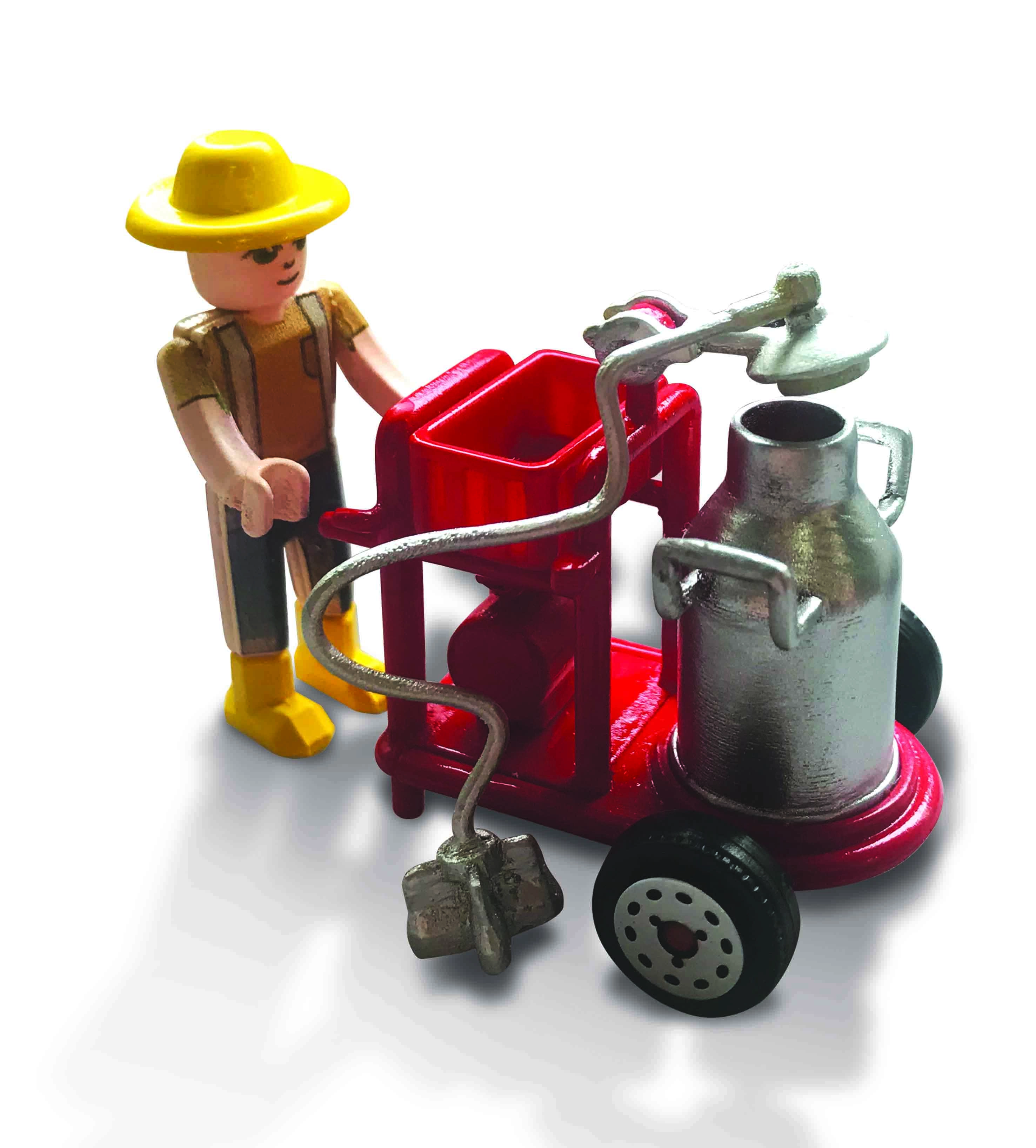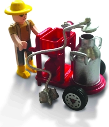 Kmet z mobilno molzno enoto in cevmi prinaša pristno kmečko rutino. Voziček je enostaven za upravljanje in razširja možnosti igre.