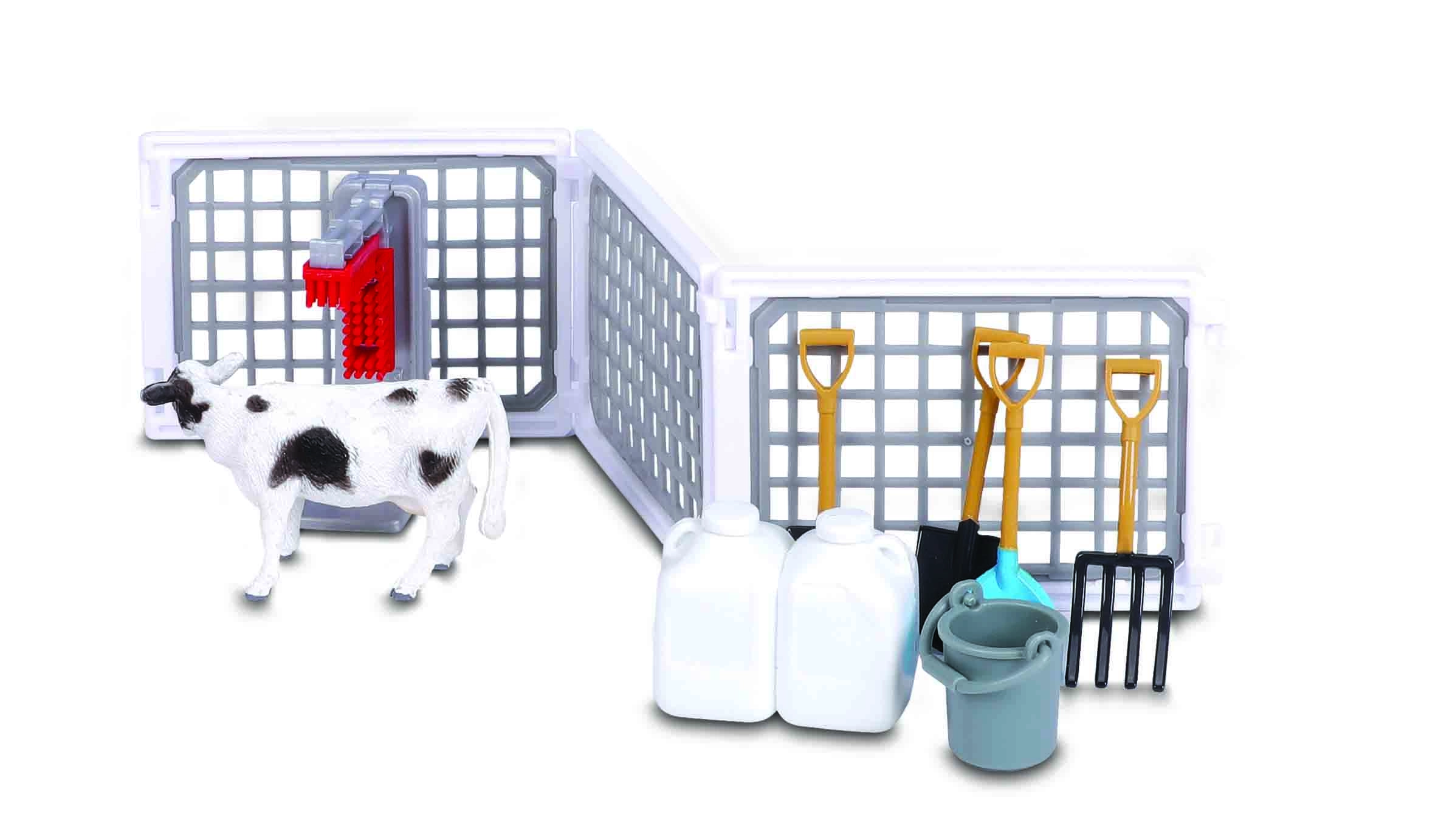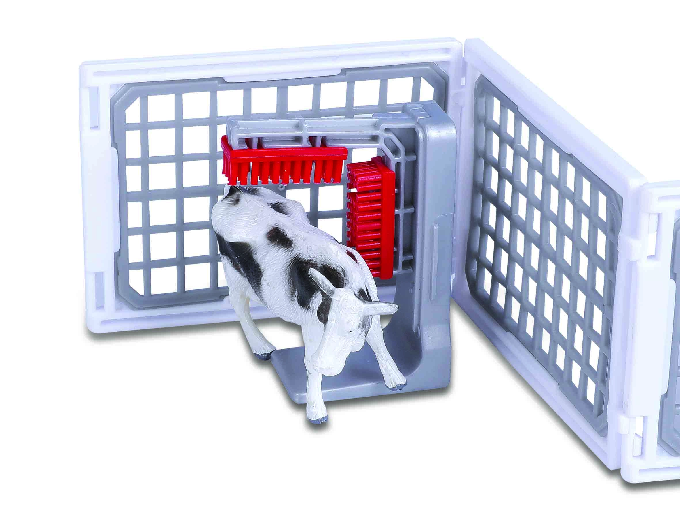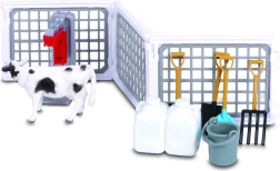 V kompletu je tudi premični voziček z molzno enoto in figurica kmeta, kar doda še en element resničnosti v vsakodnevno kmečko rutino. Otroci razvijajo fino motoriko, domišljijo in odgovornost pri skrbi za domače živali. Kakovostna plastična izdelava in trpežni deli zagotavljajo dolgo življenjsko dobo in varno igranje.