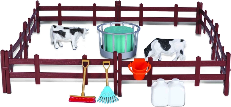 Ta podrobno izdelana kravja kmetija iz serije Bburago Farmland otrokom prinaša vse potrebno za raznoliko kmečko igro. Komplet vsebuje krave, ograde, krmilnik, orodje in dodatke za hranjenje, čiščenje in nego živali. Zahvaljujoč modularnemu sistemu lahko ogrado zlahka preurejate in ustvarjate nove igralne scenarije.