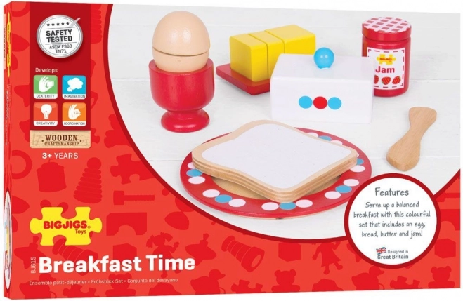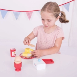 Bigjigs Toys prinaša zabaven in poučen način, kako otroke naučiti o zdravi prehrani. Leseni zajtrkovni komplet ni le odličen za spodbujanje ustvarjalnosti in domišljijske igre, temveč tudi tlakuje pot k razumevanju pomembnosti uravnotežene prehrane. Vsak del kompleta, vključno z lesenim lončkom in nožem, pomaga otrokom predstavljati si in odkrivati, od kod prihaja naša hrana in kako jo pripravljamo.