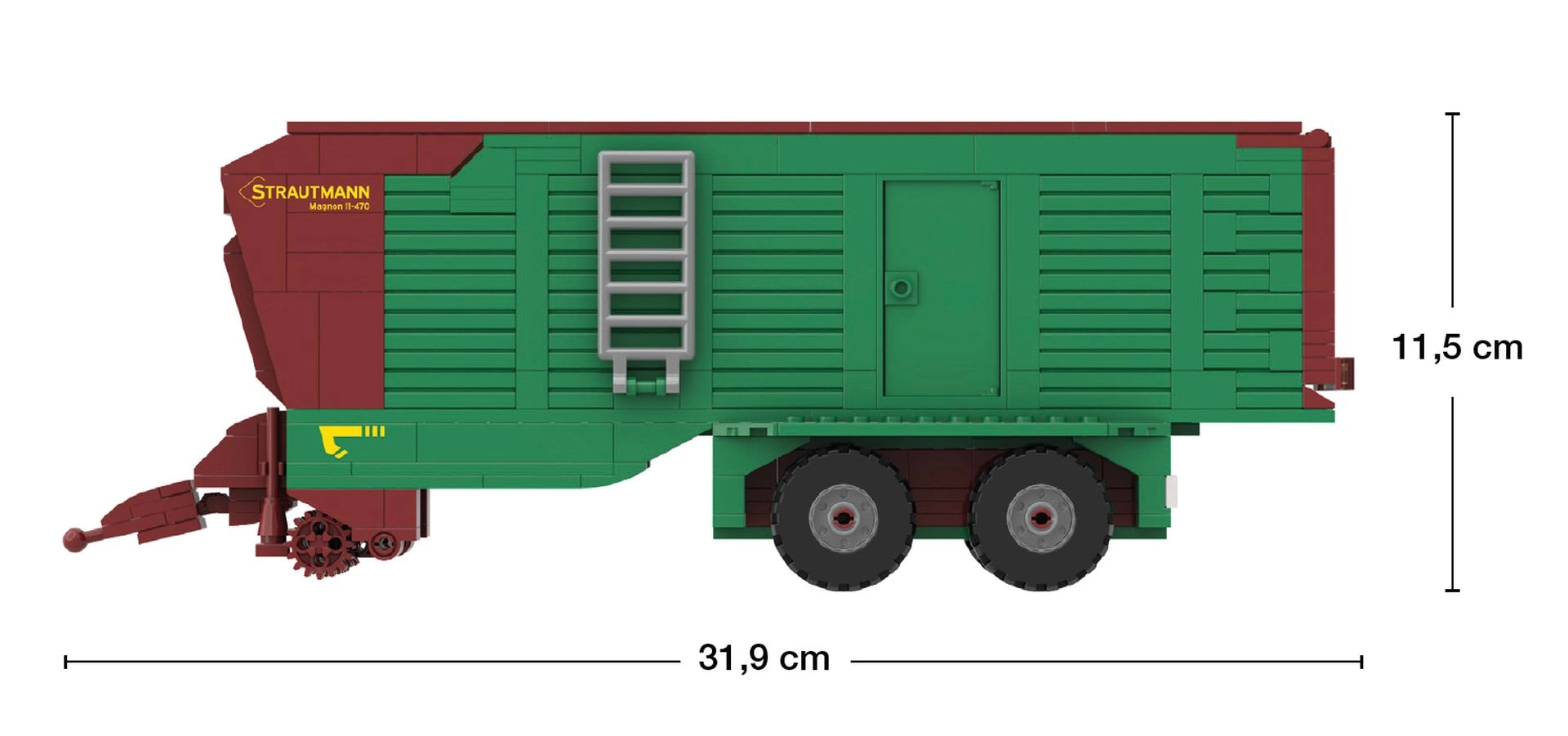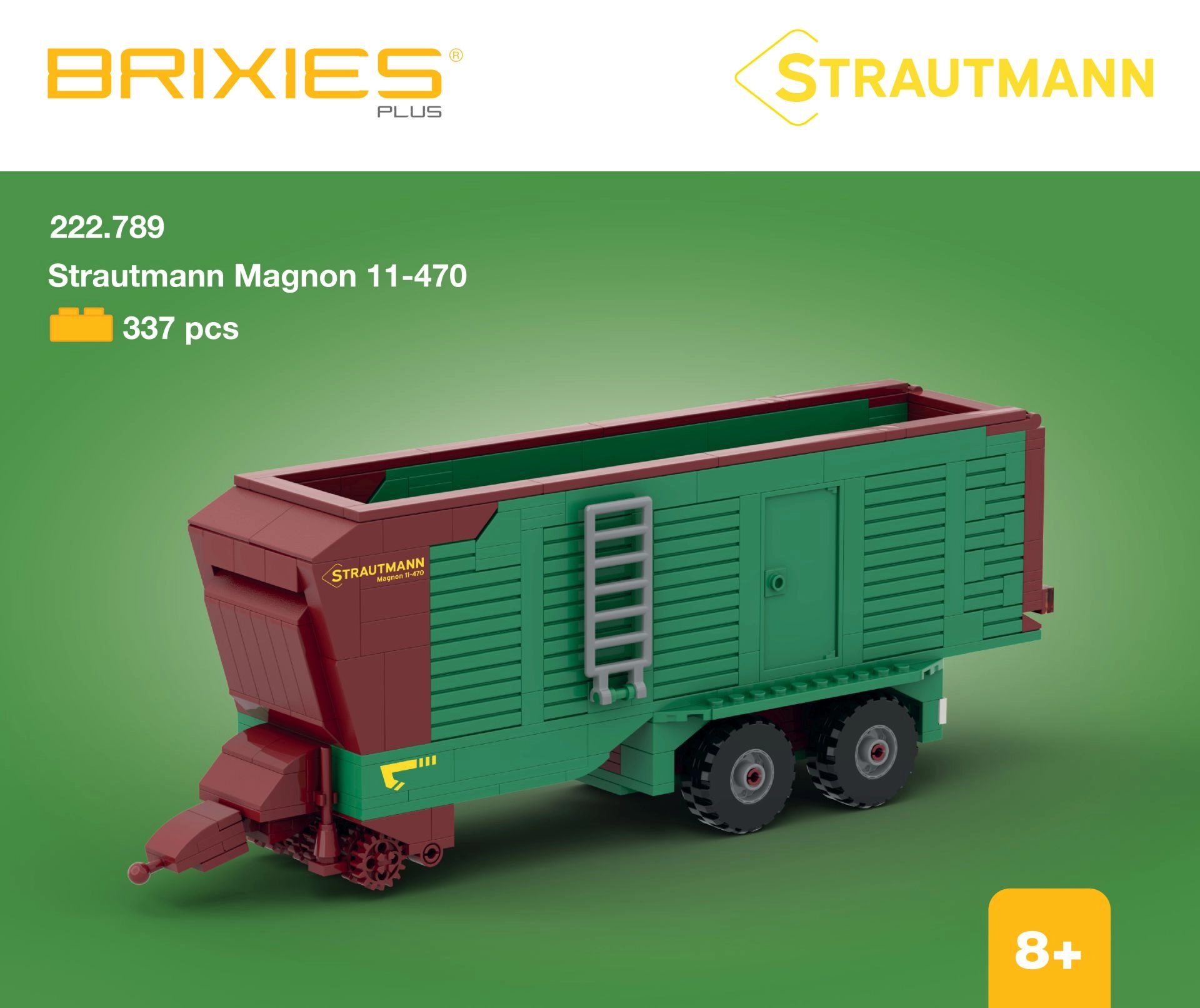 Ta podrobno zasnovana sestavljanka prinaša realističen model Strautmann Magnon 11-470, navdihnjen s pravim strojem. Po sestavi doseže dimenzije približno 31,9 × 11,5 × 8 cm (d × v × š). Večji elementi serije BRIXIES Plus zagotavljajo udobno gradnjo in visoko stabilnost modela.