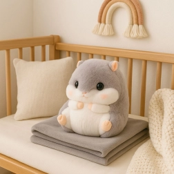 Prisrčen plišasti hrček 3v1 združuje mehko igračo, toplo odejo 100 × 90 cm in praktičen grelec za roke v enem. Zaradi nežnega otroškega pliša je idealen za crkljanje, počitek in potovanja. Ko odejo pospravite, se spremeni v udoben vzglavnik, stranske odprtine za roke pa pogrejejo prstke v hladnejših dneh.