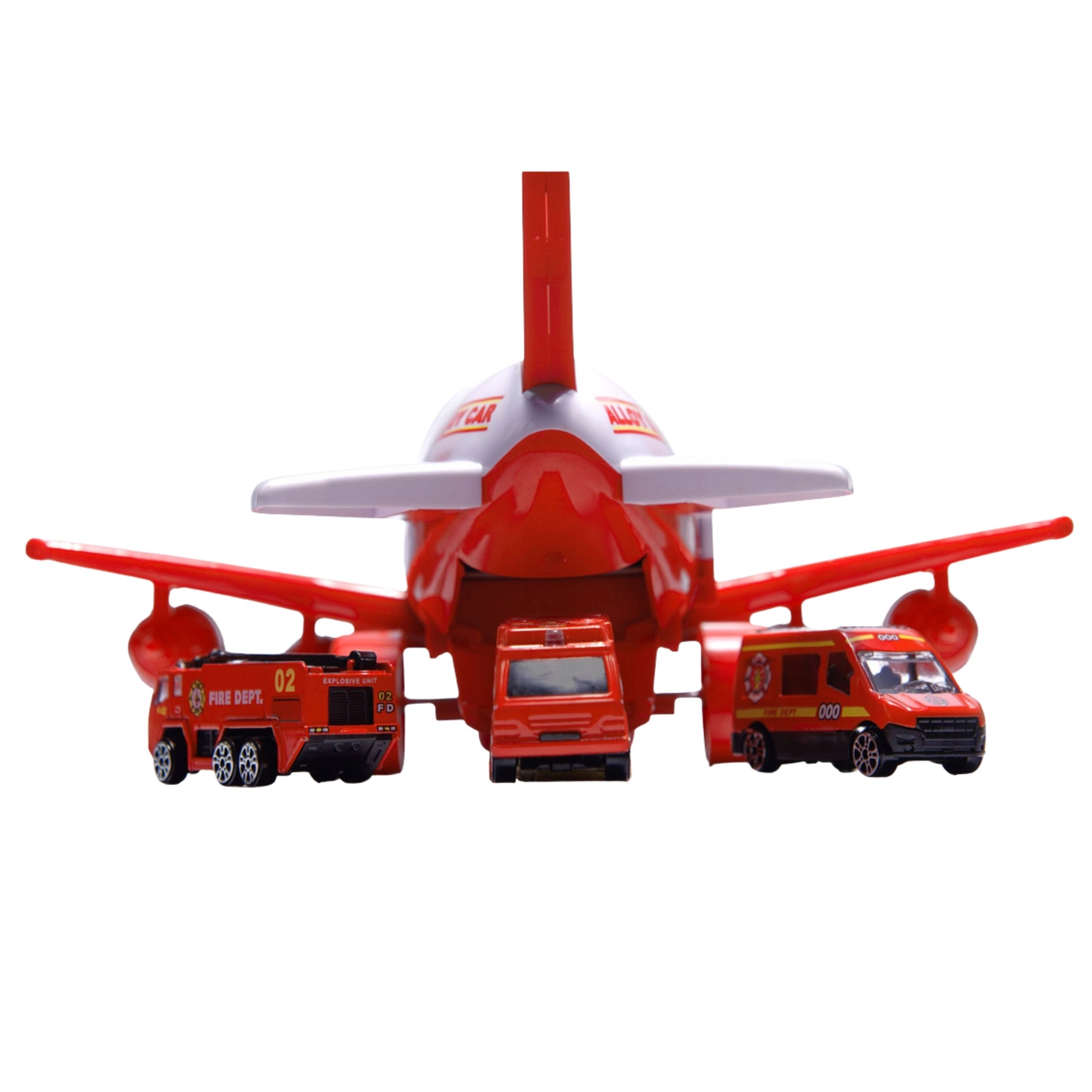 Prebudite otrokovo domišljijo z gasilskim letalom WOOPIE, ki služi kot praktičen transporter za mini vozila. Odpirajoči se trup in stranska vrata omogočajo hitro namestitev posadk, medtem ko zložljiva rampa olajša raztovarjanje vozil. Štirje gumbi sprožijo realistične sirene in utripajoče LED, zato akcija deluje povsem pristno.