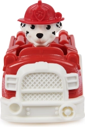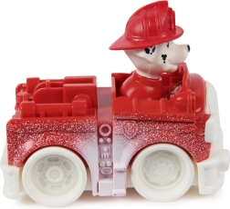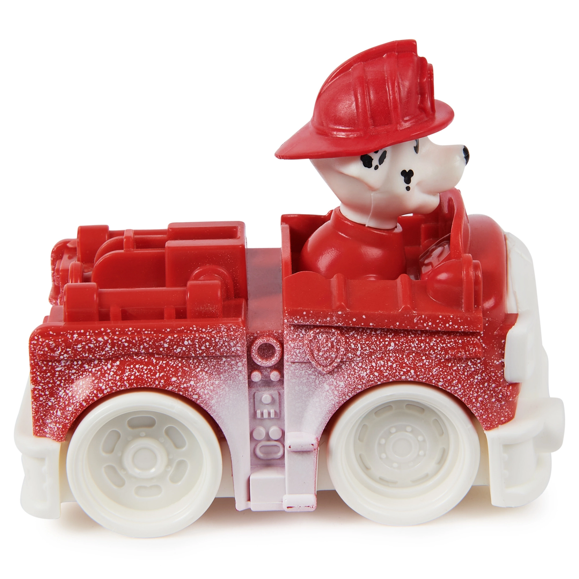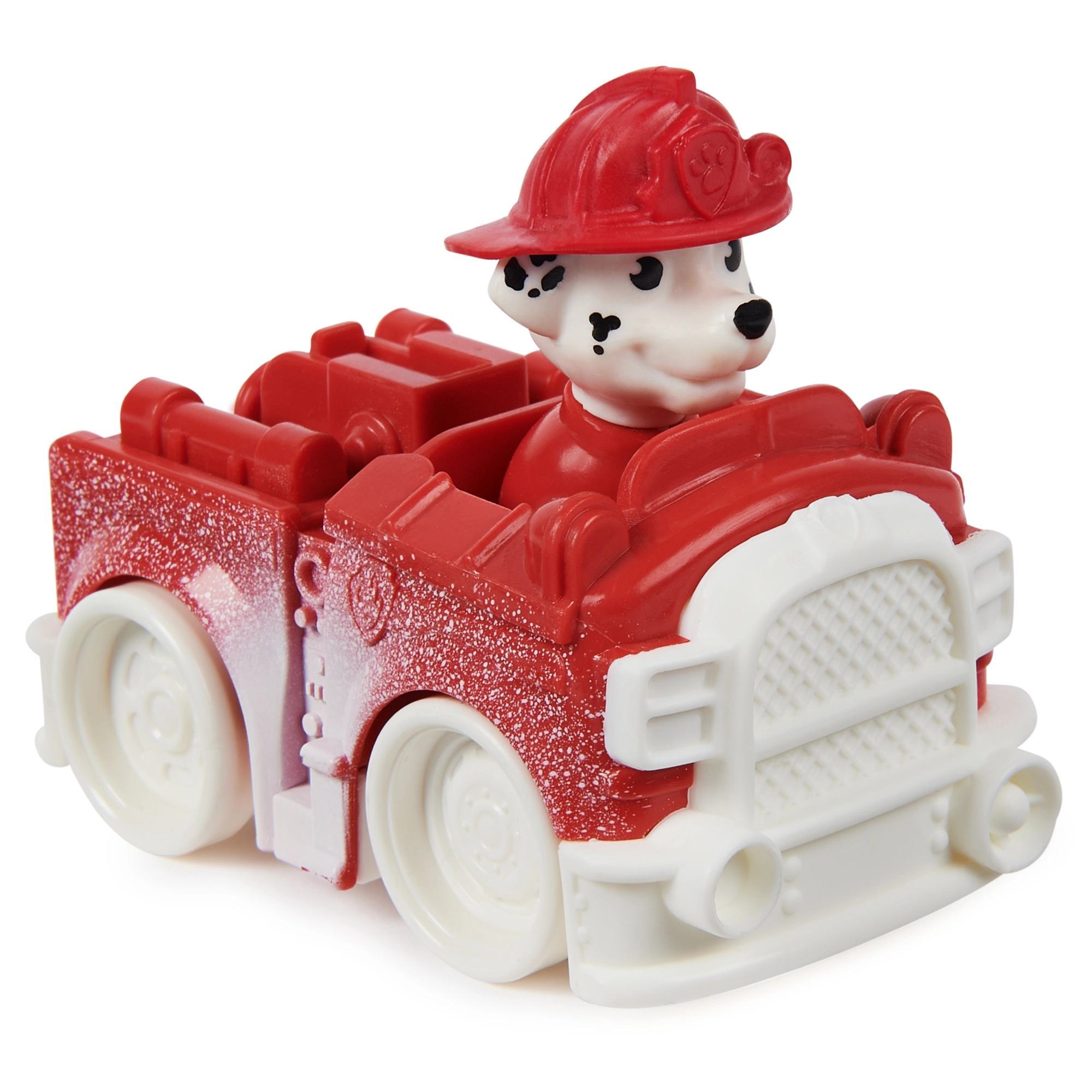 Bele “snežne” prvine na rdečem vozilu ustvarjajo zimsko vzdušje pri igri in poudarijo Marshallovo vlogo gasilca.