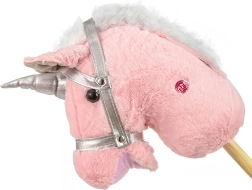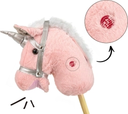 Ta eleganten rožnat Hobby Horse bo navdušil male jezdece z mehko plišasto glavo, srebrnim »rogom« in udobnim oprijemom. Ob pritisku gumbov na glavi se oglasijo avtentični zvoki kasa in rezgetanja, ki igri jahanja dodajo še več realizma. Trdna lesena palica zagotavlja stabilnost in enostavno upravljanje tudi za najmlajše.