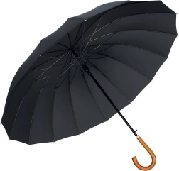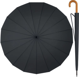 Velik samodejni dežnik z lesnim ročajem, 24 reber, 115 cm, črn