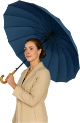Vzdržljiva, vodoodporna in hitro sušeča tkanina zlahka strese kaplje. Lesen, ukrivljen ročaj doda pridih elegance in udobja, praktični etuij s trakom pa olajša prenašanje čez ramo v službo, po mestu ali na sprehode.
