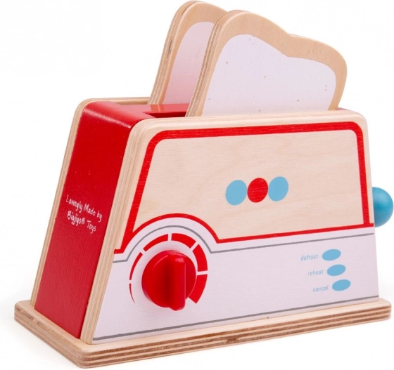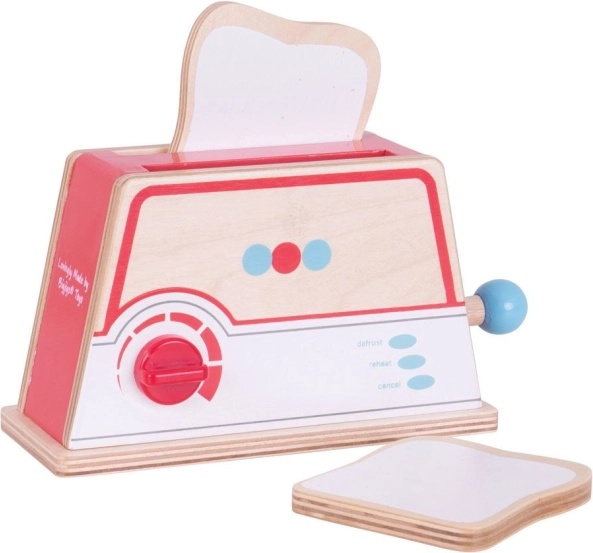 Odlično se poda v otroško kuhinjico. Dve leseni rezini kruha navdihujeta postrežbo zajtrka ter razvijata domišljijo in socialne veščine.