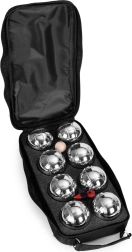 Odkrijte družabno igro za vse generacije. Pétanque lahko igrate na vrtu, v parku, na plaži ali na dopustu – brez posebne priprave igrišča. Cilj je metati krogle tako, da pristanejo čim bliže majhni leseni žogici – cochonnetu. Kompaktna torbica omogoča, da komplet vzamete kamorkoli s seboj.