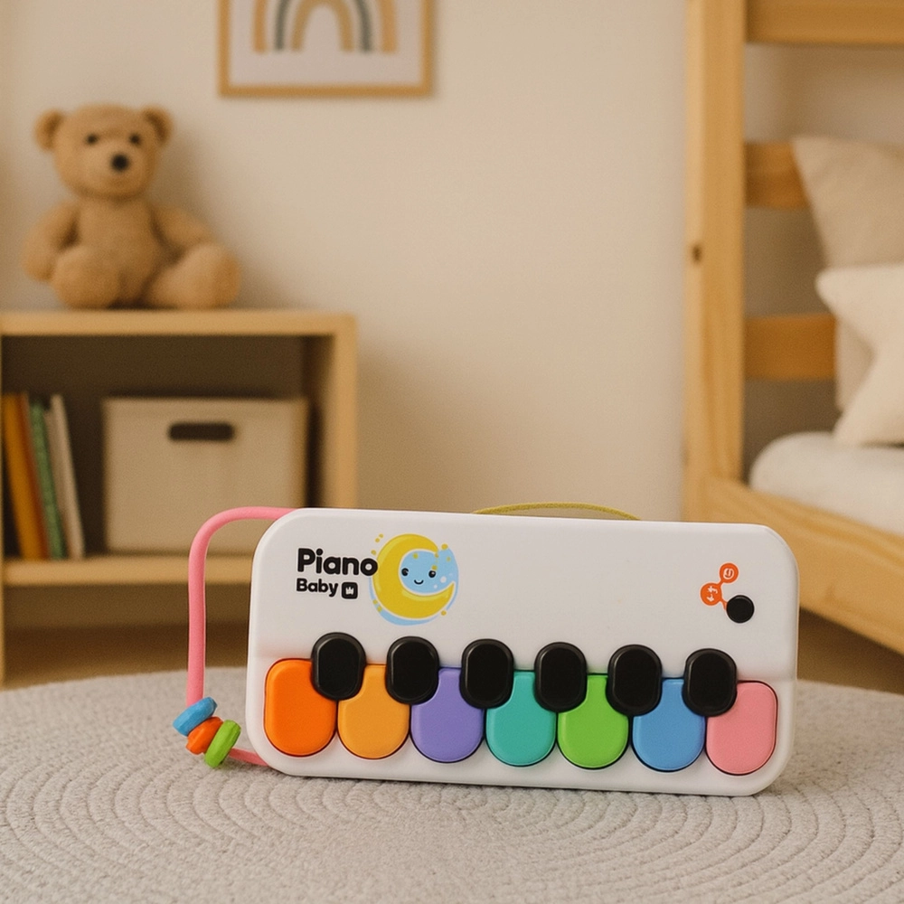 Barviti interaktivni klavirček za najmlajše razvija sluh, ritem in domišljijo. Zahvaljujoč 8 pisanim tipkam, prijetnim zvočnim učinkom ter lahki, prenosni zasnovi z oprijemljivim paščkom je idealen za doma, vrtec in na poti. Izdelan iz varnih materialov, odličen za majhne rokice.