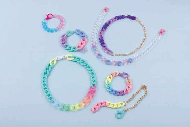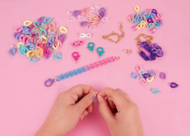 Odkrijte zabavo, stil in ustvarjalnost s tem kompletom za izdelavo zapestnic. Kombinirajte trendovske barvne komponente v dveh velikostih, mešajte mat in neprosojne povezovalne dele ter ustvarite neskončne izvirne kombinacije. Idealno za otroke od 8 let.