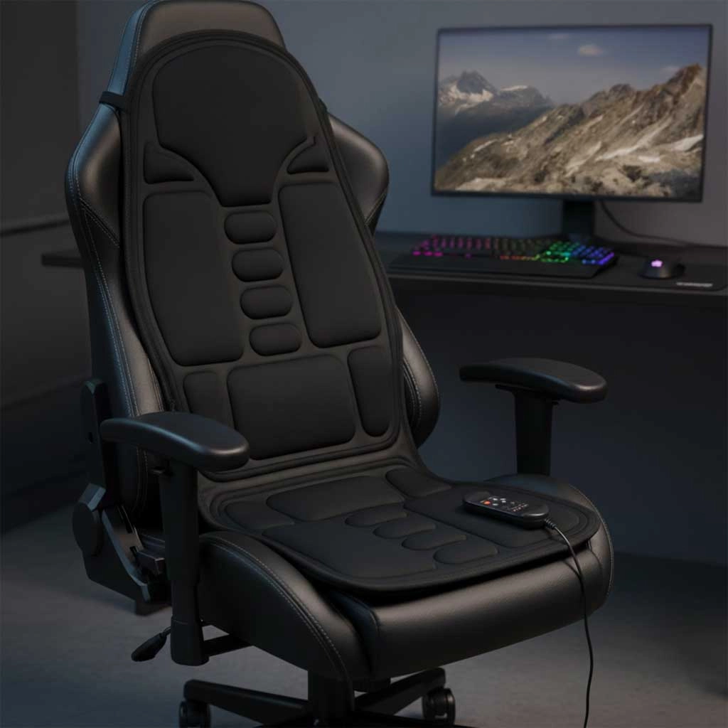 Ta udoben masažni prevleček za sedež prinaša ciljno vibracijsko masažo hrbta in stegen ter z integriranim segrevanjem pomaga ogreti mišice. Enostavna pritrditev z elastičnimi trakovi zagotavlja stabilnost na pisarniškem stolu, igralnem naslanjaču in avtomobilskem sedežu.