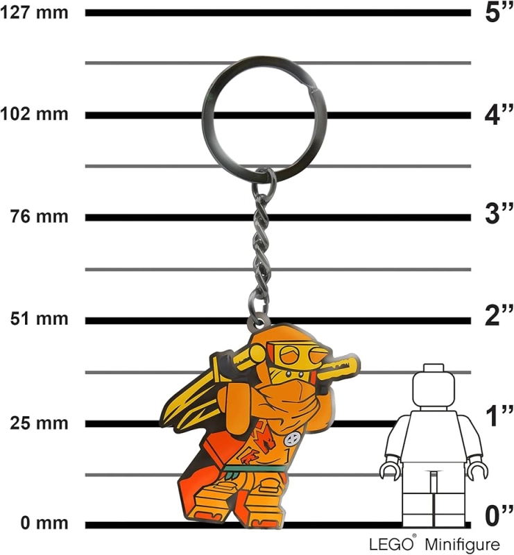 Praktična velikost približno 6 cm se zlahka prilega v žep, hkrati pa je dovolj izrazita, da ključe lažje najdeš. Odlična ideja za darilo za otroke in odrasle oboževalce Ninjago ter zbiratelje LEGO dodatkov.