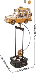 Road Tripper je dovršen mehanski model iz naravne vezane plošče, ki po sestavi oživi zahvaljujoč obteženemu nihalu in zobnikom v osnovi. Vozilo, navdihnjeno z retro terenci, navduši z detajli – voznik s kavo, zvest pes na poti, deska za surf in kovček na strehi ter balončki, ki ustvarijo pravo vzdušje pustolovščine.