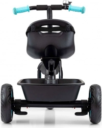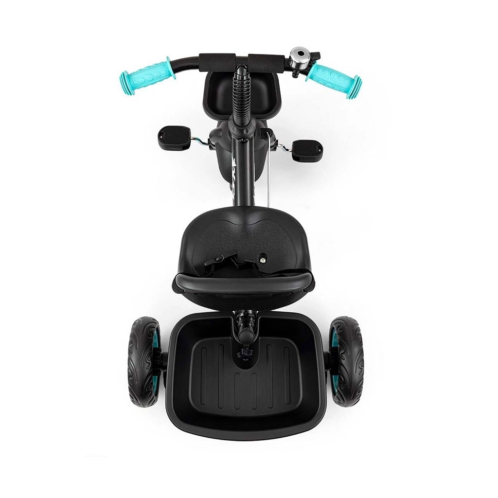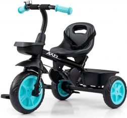 Praktičen in varen tricikel za najmlajše od 1 do 3 let. Ponuja vzdržljiv jeklen okvir, nastavljiv sedež, vodilno palico za starše in široka kolesa EVA za udobno vožnjo. Zahvaljujoč možnosti odklopa pogona pedal lahko otroka udobno potiskate. Dva koška, zvonec in 3-točkovni pasovi poskrbijo za zabavo in varnost na vsakem izletu.