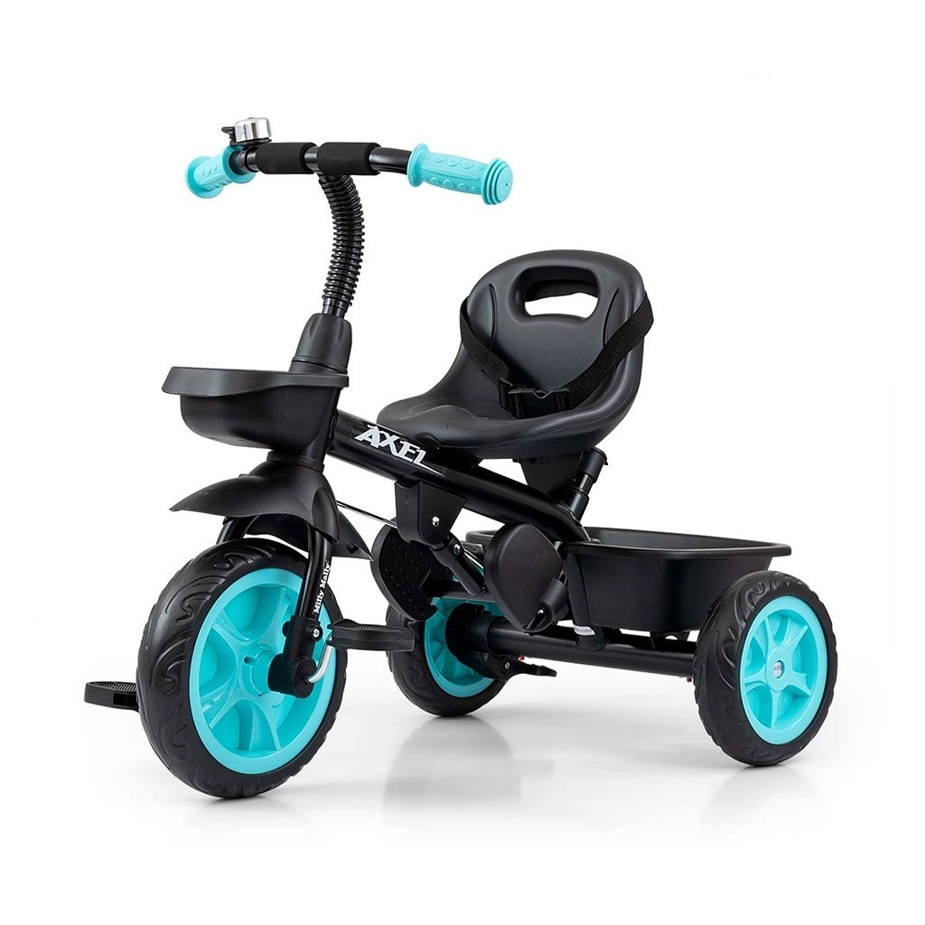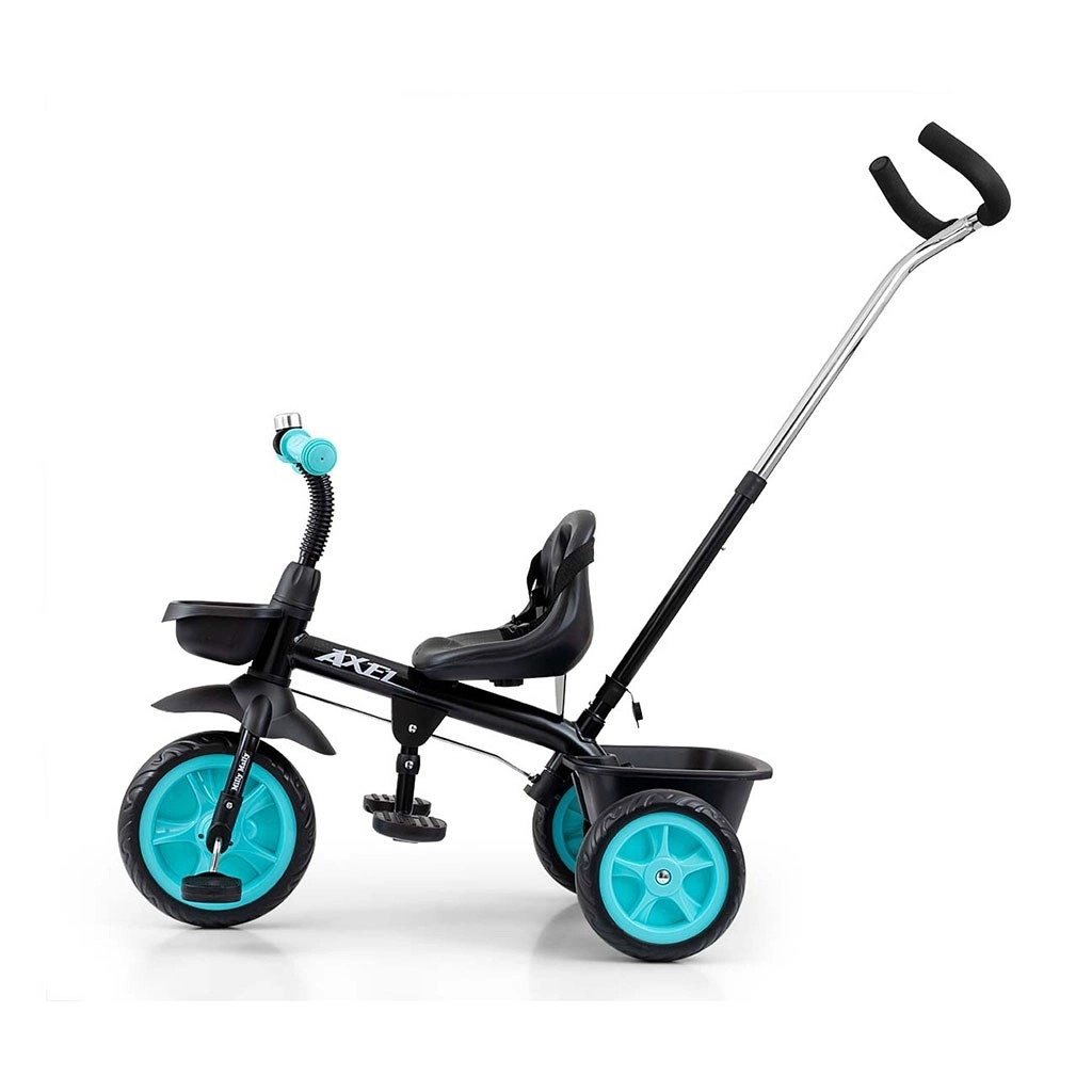Ta otroški tricikel MILLY MALLY AXEL raste z vašim otrokom – enostavno nastavite razdaljo sedeža do krmila in dolžino vodilne palice. Vzdržljiva kovinska konstrukcija v kombinaciji s kakovostnimi materiali zagotavlja dolgo življenjsko dobo in stabilnost. Široka kolesa iz utrjene pene EVA blažijo neravnine in ne zahtevajo vzdrževanja.