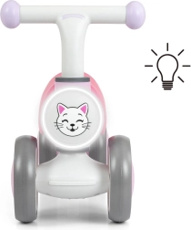 Vgrajena LED lučka na čelu in zvočni učinki (melodije in živalski zvoki) poskrbijo za zabavno izkušnjo vožnje in hkrati podpirajo senzorični razvoj. Poganjalec je zasnovan za varno uporabo v notranjih prostorih in na gladkih zunanjih površinah.