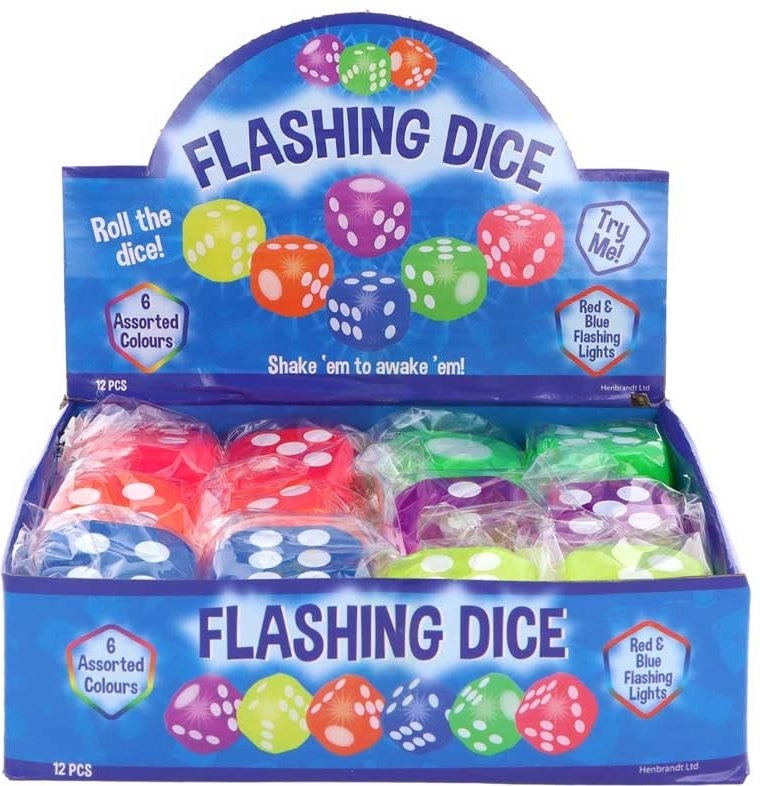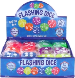 Zabavna gumijasta igralna kocka z vgrajenimi LED, ki ob padcu na mizo začne barvno utripati. Idealna za zabave, igre in večerno razvedrilo. Priložene so nezamenljive baterije, zato kocko le odvijte iz embalaže in začnite uporabljati. Kompaktna velikost 4 × 4 × 4 cm. Pakiranje vsebuje 1 kos, barva glede na trenutno ponudbo.