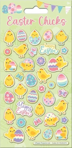 Vesele bleščeče nalepke z velikonočnimi motivi polepšajo jajčka, zvezke, fascikle in telefon. So večkrat uporabne, enostavne za namestitev in puščajo čisto površino brez ostankov lepila.