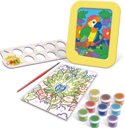 Ta ustvarjalna aktivnost spodbuja zbranost, fino motoriko in prepoznavanje barv. S priloženo barvno predlogo in kompletom barv s stojalom zlahka dosežete čudovit rezultat tudi brez predhodnih izkušenj.