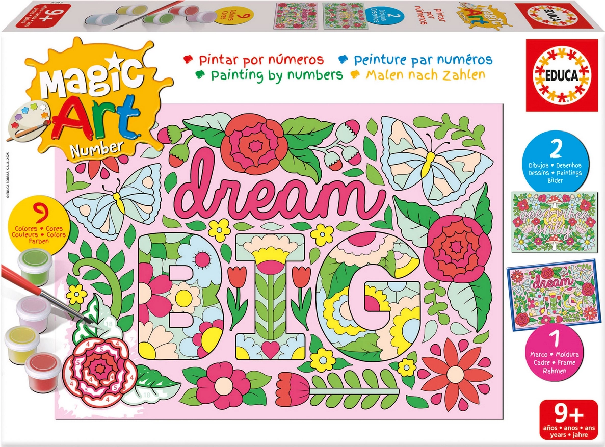 Odkrijte veselje do ustvarjanja s kompletom Educa slikanje po številkah – rože. Zahvaljujoč predtiskanim segmentom in priloženim barvam je slikanje preprosto, zabavno in primerno tudi za začetnike. Aktivnost razvija zbranost, koordinacijo in prepoznavanje barv.
