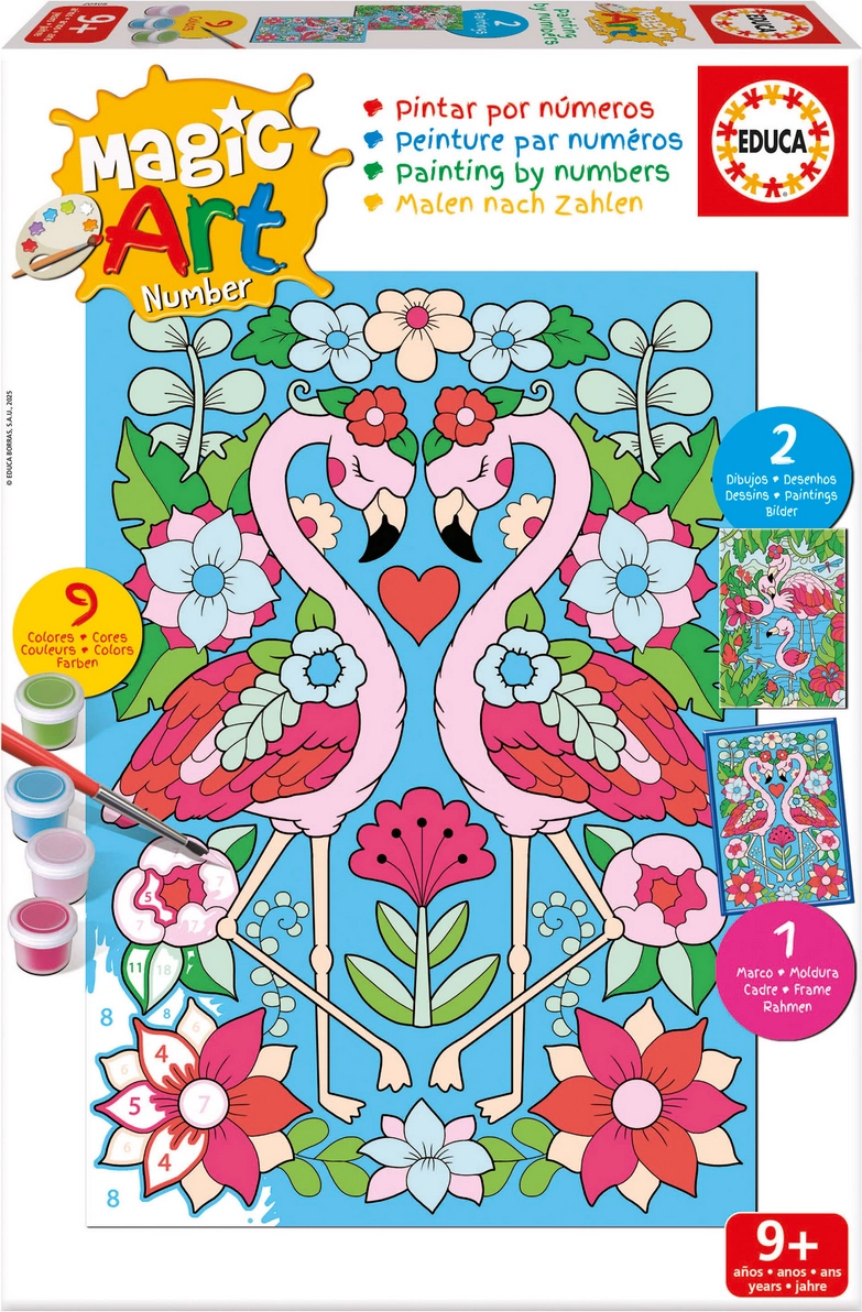 Odkrijte zabavno in sproščujoče ustvarjanje z zbirko slikanje po številkah znamke Educa. Ta set z motivom plamencev je idealen za otroke in odrasle – le sledite oštevilčenim delom in ustvarili boste lastno sliko brez predhodnih izkušenj. Aktivnost spodbuja zbranost, gibalno koordinacijo in prepoznavanje barv.